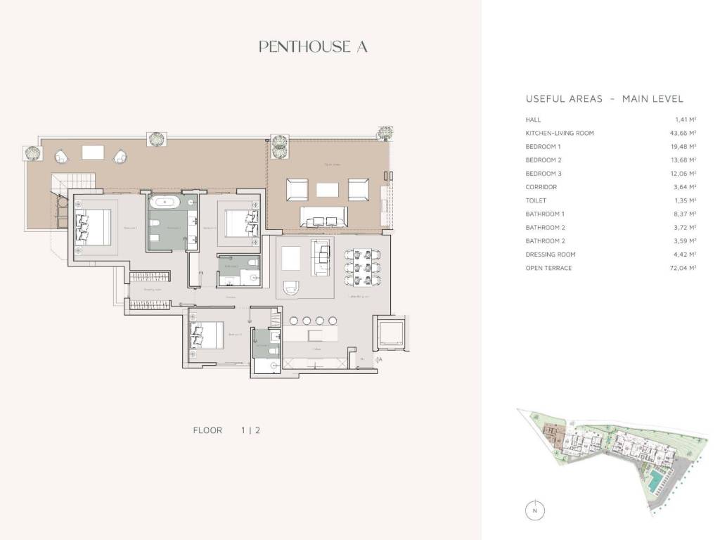 La comunidad cuenta con apartamentos de lujo de 2 y 3 dormitorios, áticos y dúplex dentro de un complejo cerrado y seguro. La primera fase consta de solo 16 residencias distribuidas en dos edificios de baja altura, lo que garantiza la exclusividad y la tranquilidad.
