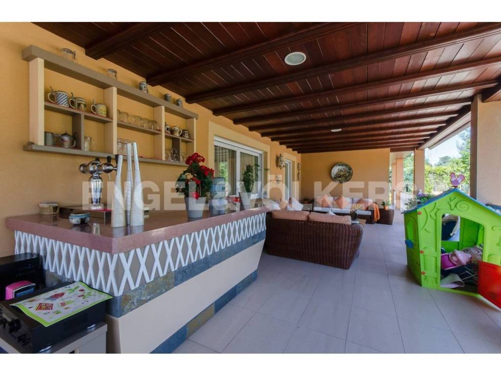 Destacamos la comunicación que tiene la cocina con un maravilloso porche exterior, muy privado, ideal para comidas y cenas al aire libre, con barra de bar, zona de barbacoa y desde el que podemos visualizar toda el área de piscina con hamacas y su zona de chill out.