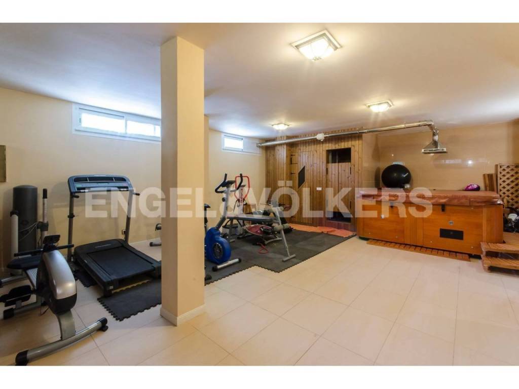 La planta inferior de la vivienda es perfecta para celebraciones más informales en su salón, equipado con cocina integrada. A parte para su disfrute, una gran bodega y un gimnasio con jacuzzi, sauna y ducha. Esta planta se completa con un dormitorio para invitados, un baño y área para despensa y almacenaje. El Garaje interior tiene espacio para cuatro vehículos y en zona exterior disponemos de una pérgola para dos más.