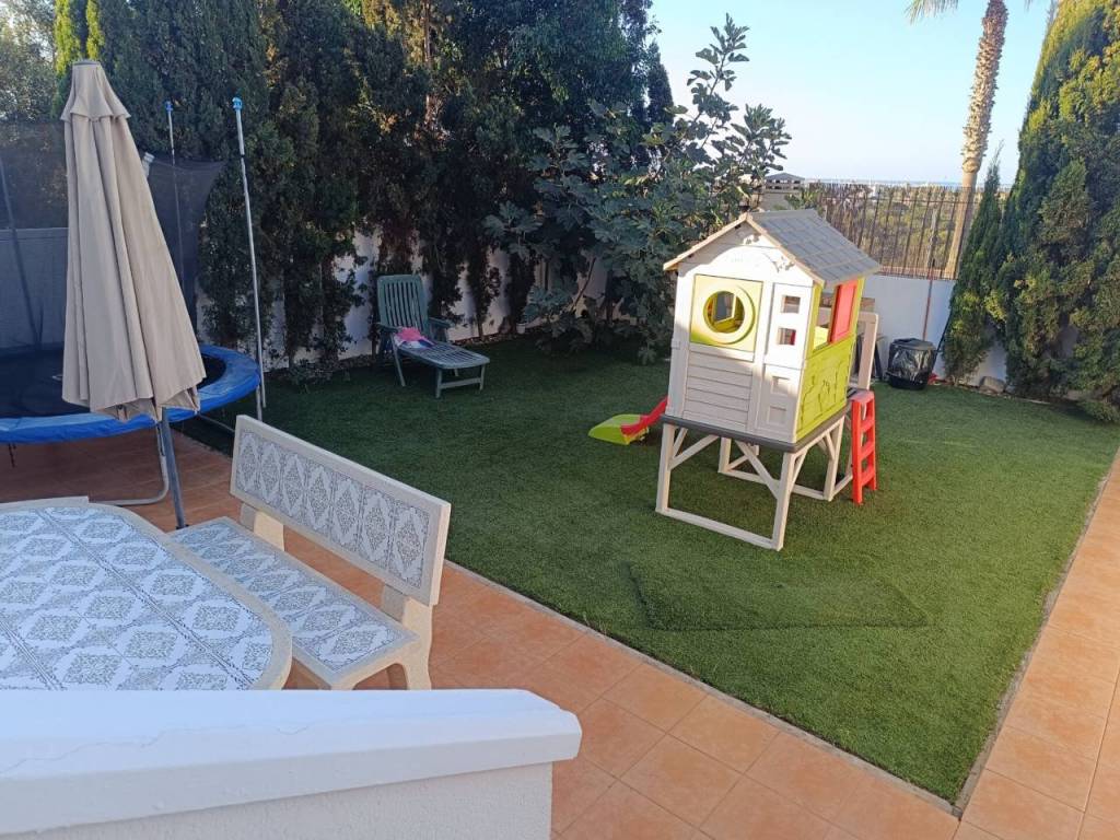 La casa cuenta con cuatro amplios dormitorios y dos baños, perfectos para acomodar a toda la familia. La cocina americana, equipada y luminosa, se integra perfectamente con el salón, creando un espacio ideal para compartir momentos inolvidables. Desde aquí, podrás acceder a un encantador jardín con barbacoa, donde podrás disfrutar de agradables veladas al aire libre mientras contemplas las hermosas vistas al mar.