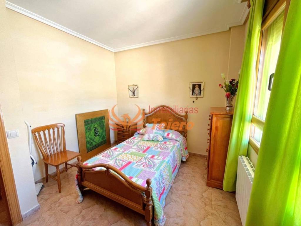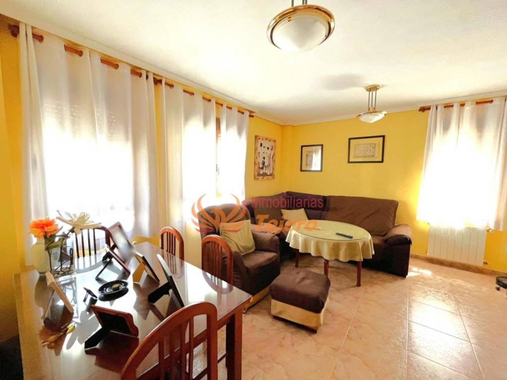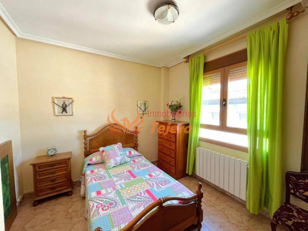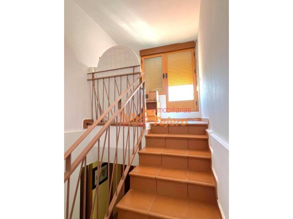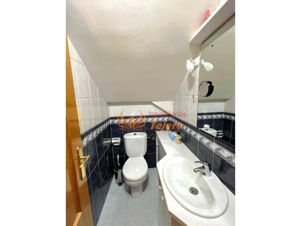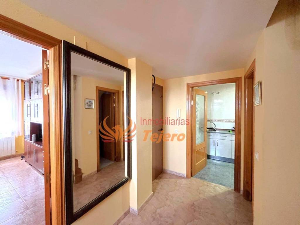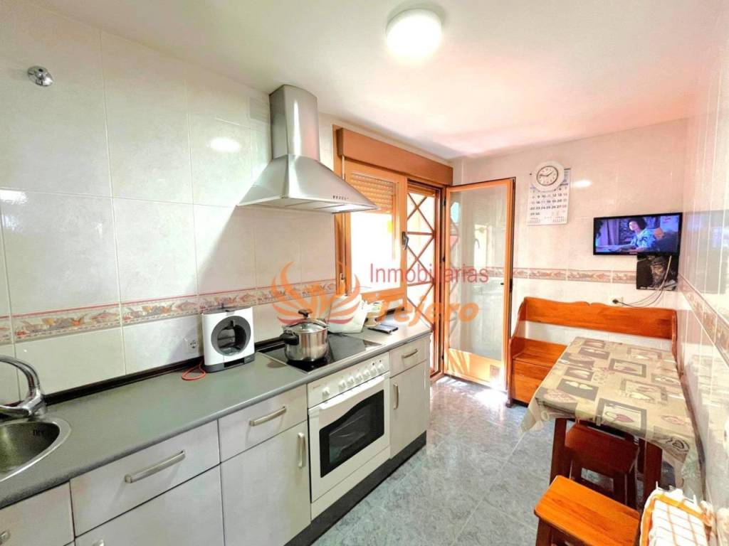 En la planta principal se encuentran las estancias de uso más cotidiano. El salón, amplio y con buena luz natural, ofrece un espacio cómodo y agradable para la vida diaria. En esta misma planta hay una habitación doble con un gran armario empotrado, un aseo y la cocina, equipada y con acceso directo al patio interior, un espacio perfecto para ventilar, tener plantas o disfrutar al aire libre dentro del propio hogar. Desde el patio se accede también a la plaza de garaje, lo que aporta comodidad y facilita la entrada directa a la vivienda.
