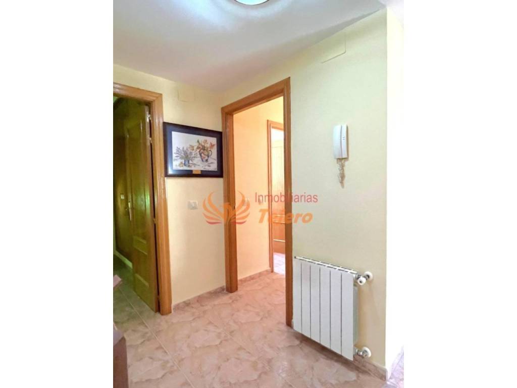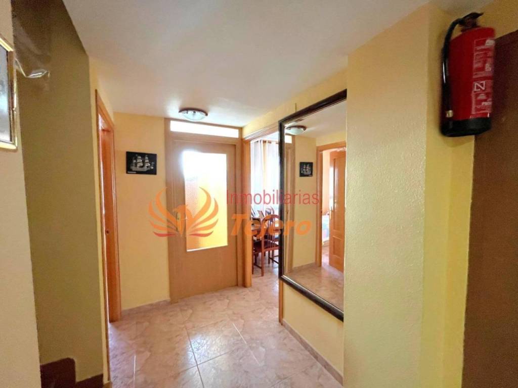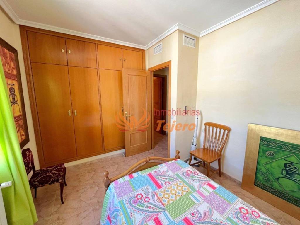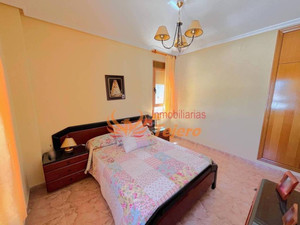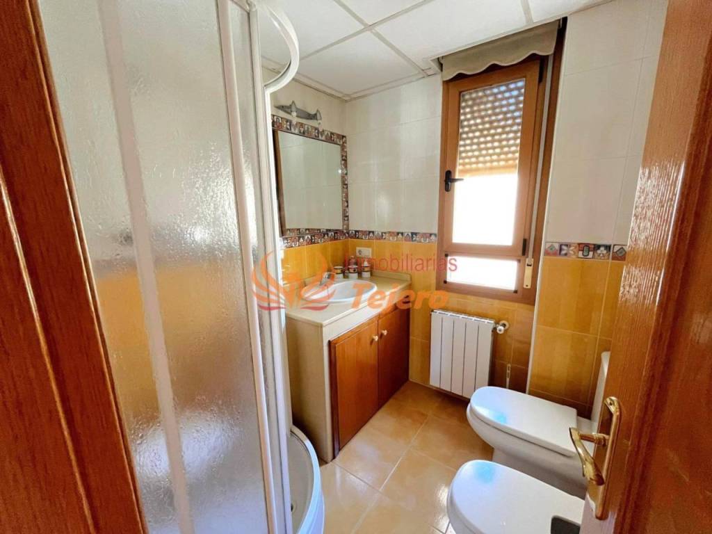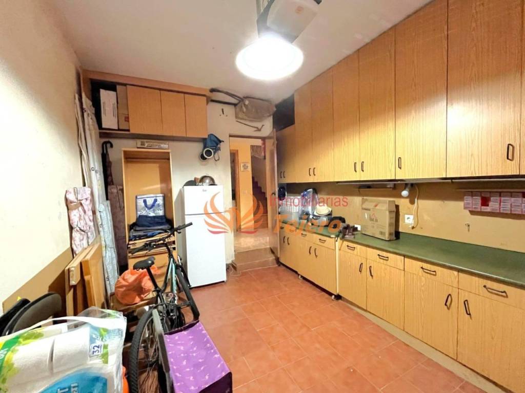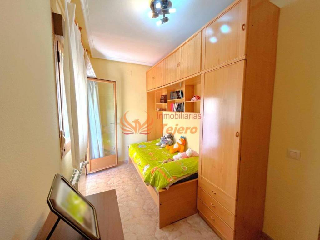 En la planta principal se encuentran las estancias de uso más cotidiano. El salón, amplio y con buena luz natural, ofrece un espacio cómodo y agradable para la vida diaria. En esta misma planta hay una habitación doble con un gran armario empotrado, un aseo y la cocina, equipada y con acceso directo al patio interior, un espacio perfecto para ventilar, tener plantas o disfrutar al aire libre dentro del propio hogar. Desde el patio se accede también a la plaza de garaje, lo que aporta comodidad y facilita la entrada directa a la vivienda.