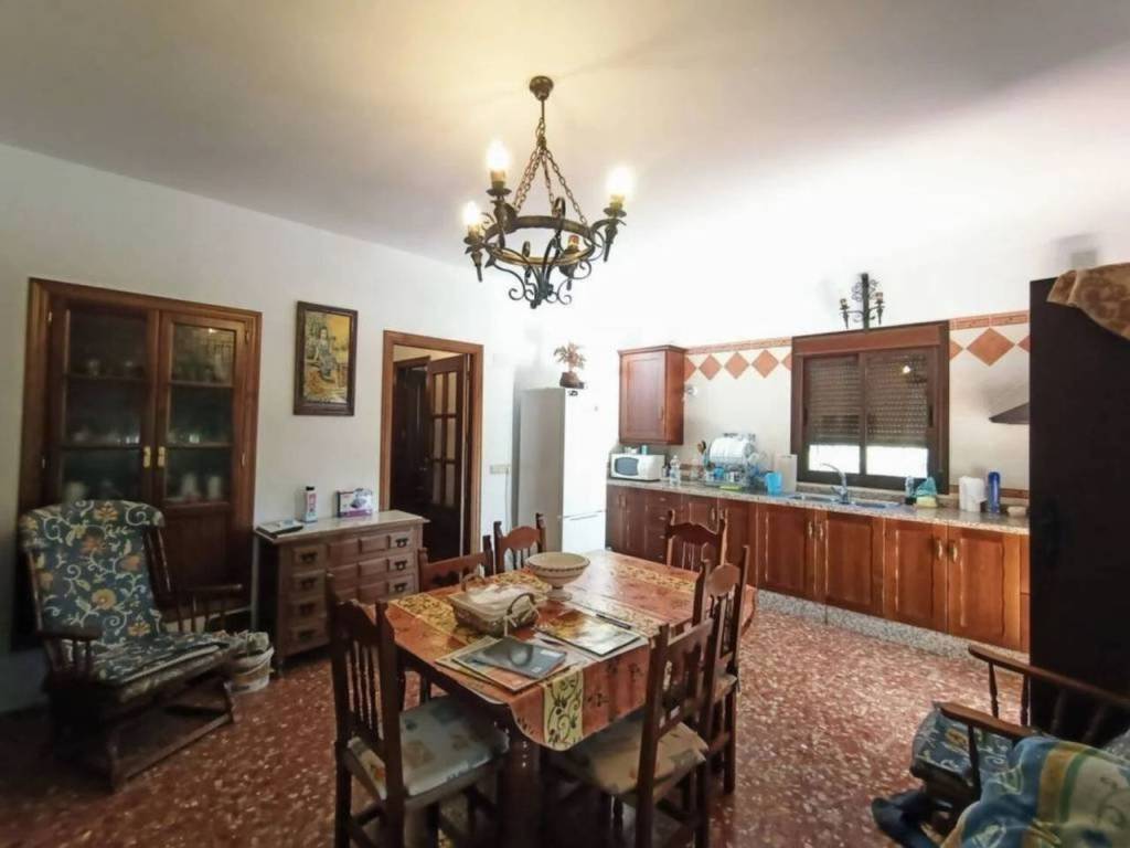 La casa principal tiene una superficie de 120 m², distribuida en dos casa de 60 m² cada una. Además, hay un trastero independiente y una cocina separada de unos 12 m². También cuenta con una casita de aperos independiente.