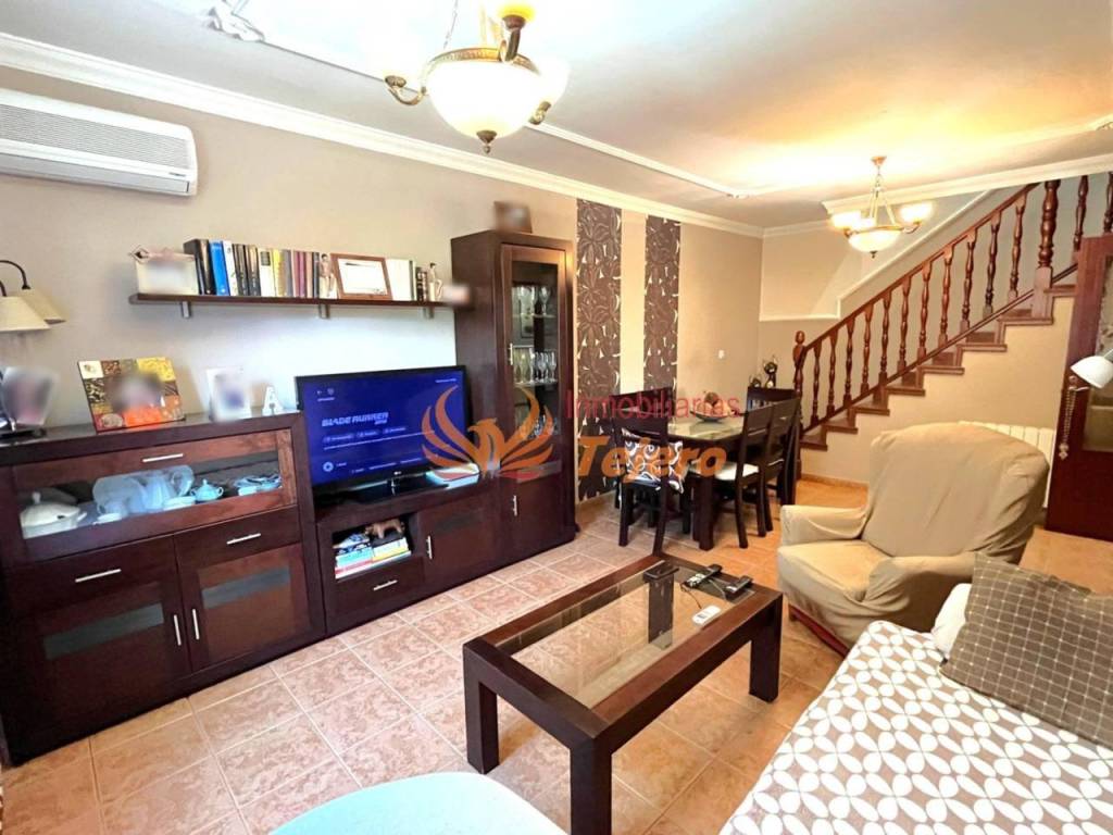 Nada más entrar, encontramos un salón amplio y luminoso, el verdadero corazón de la vivienda. Es un espacio acogedor que conecta perfectamente la planta baja con la superior, y donde la luz natural y la amplitud crean un ambiente ideal tanto para relajarse como para compartir momentos con familiares y amigos ✨.