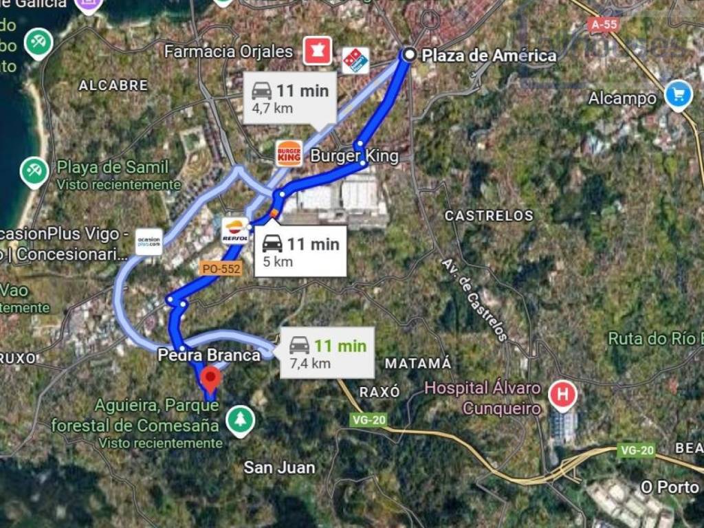 En cuanto a comunicaciones, está muy próximo a la parada de autobús urbano y a la entrada de la autovía de circunvalación de Vigo que te lleva al Hospital Álvaro Cunqueiro, a la Ciudad Universitaria, a los Parques Tecnológicos de Vigo y de Vincios, al Aeropuerto o a cualquier otro destino (Santiago, La Meseta o Portugal...).