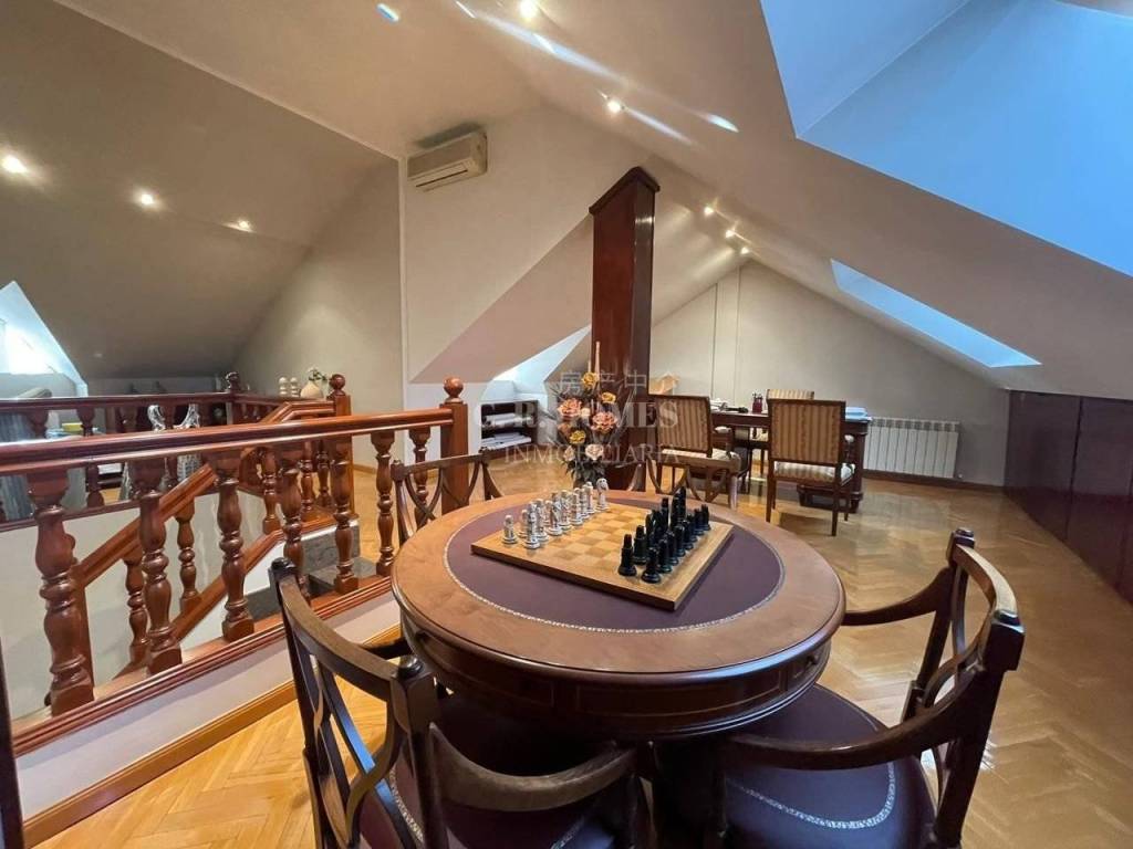 Muy luminosa, con cuatro ventanas Velux, ideal para crear zona de trabajo, juegos o dormitorios adicionales. Dispone de amplio almacenaje empotrado bajo cubierta.