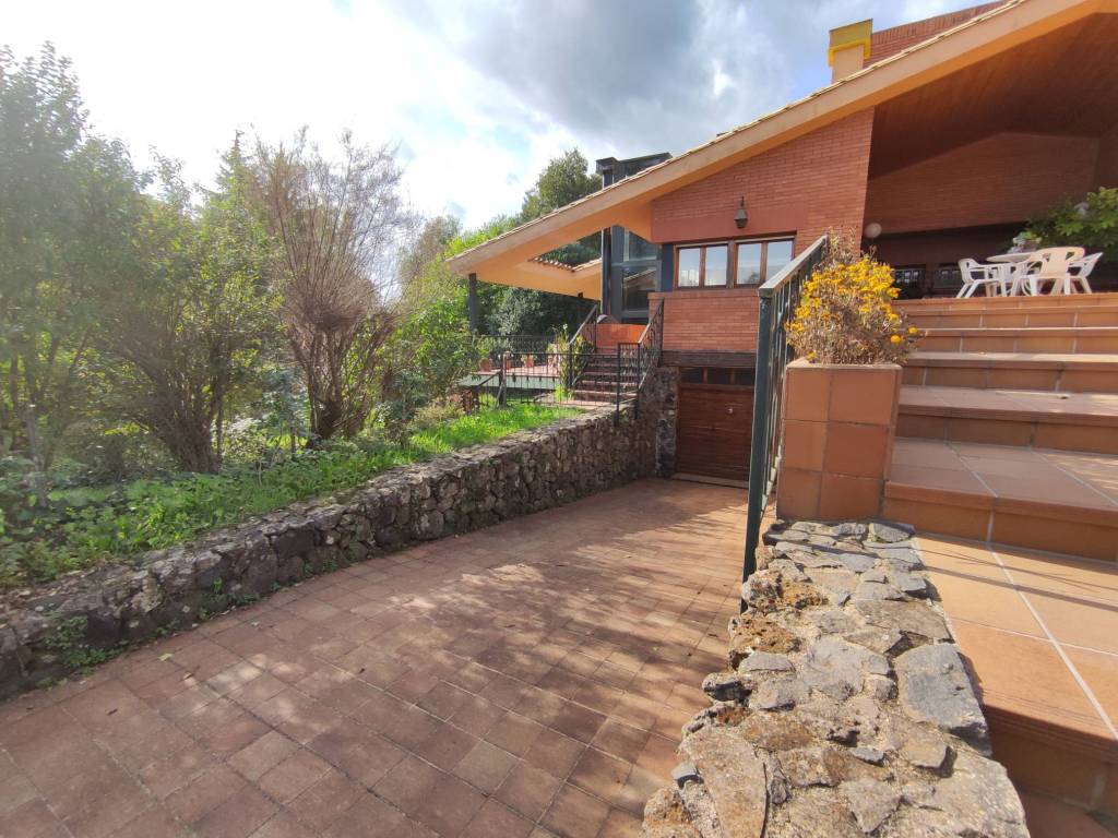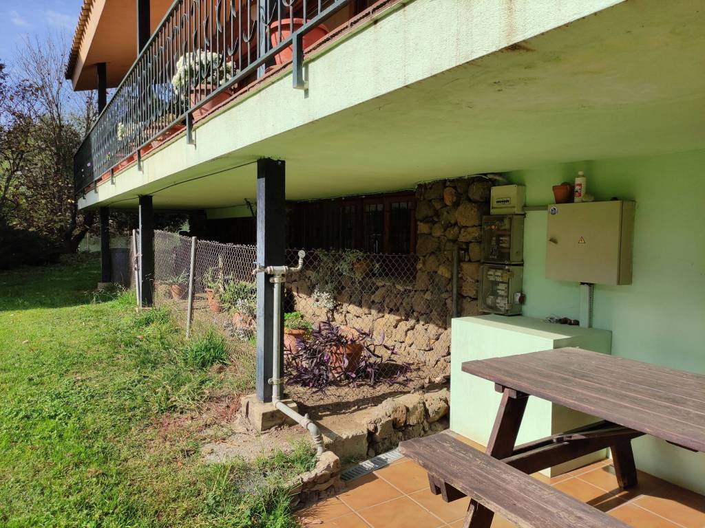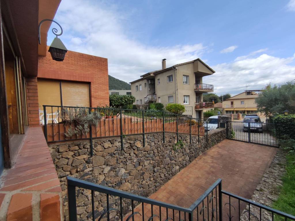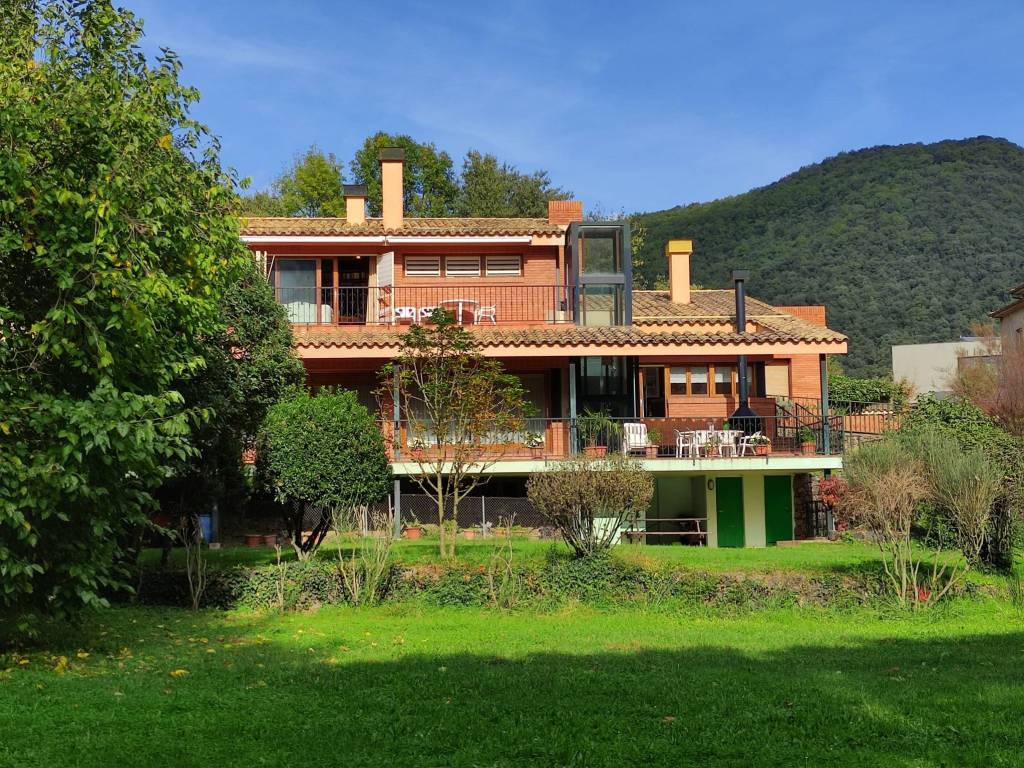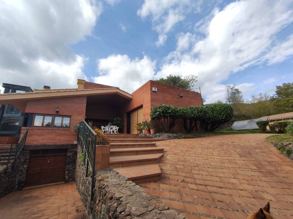 Finca con terreno ubicada en una buena zona de la población de Sant Joan les Fonts. La vivienda dispone de tres plantas. Planta 0: Compuesta por dos pequeños trasteros exteriores, garaje, despensa, despacho, estudio-habitación, cocina, sala de gimnasio, baño y almacén. Planta 1: Compuesta por recibidor, sala de estar-comedor con chimenea hidro, cocina, sala de estar, cinco habitaciones, tres baños, dos aseos, vestidor, lavadero, sala de caldera, sauna, trastero y una sala polivalente, además de un porche en la zona de entrada de la vivienda, otra situada en la parte posterior, y una terraza-balcón ubicada en toda la fachada sur del edificio. Planta 2: Compuesta por un estudio, despacho y habitación tipo suite con baño y vestidor, además de dos terrazas, una con acceso desde el despacho y el otro desde la habitación. El terreno tiene pista de tenis, de básquet, de fútbol y también piscina con zona de bar. Ámplios jardines con toda clase de árboles, zonas de descanso y picnic. Cabaña de madera para niños. Placas solares y calefacción de gasoil.