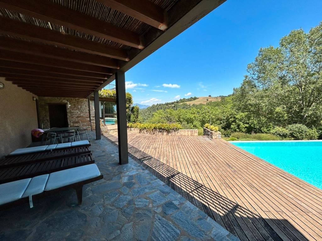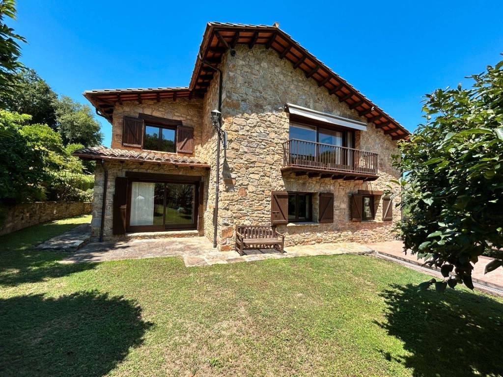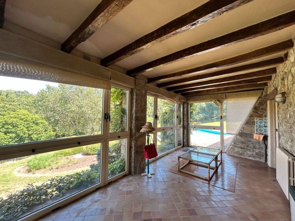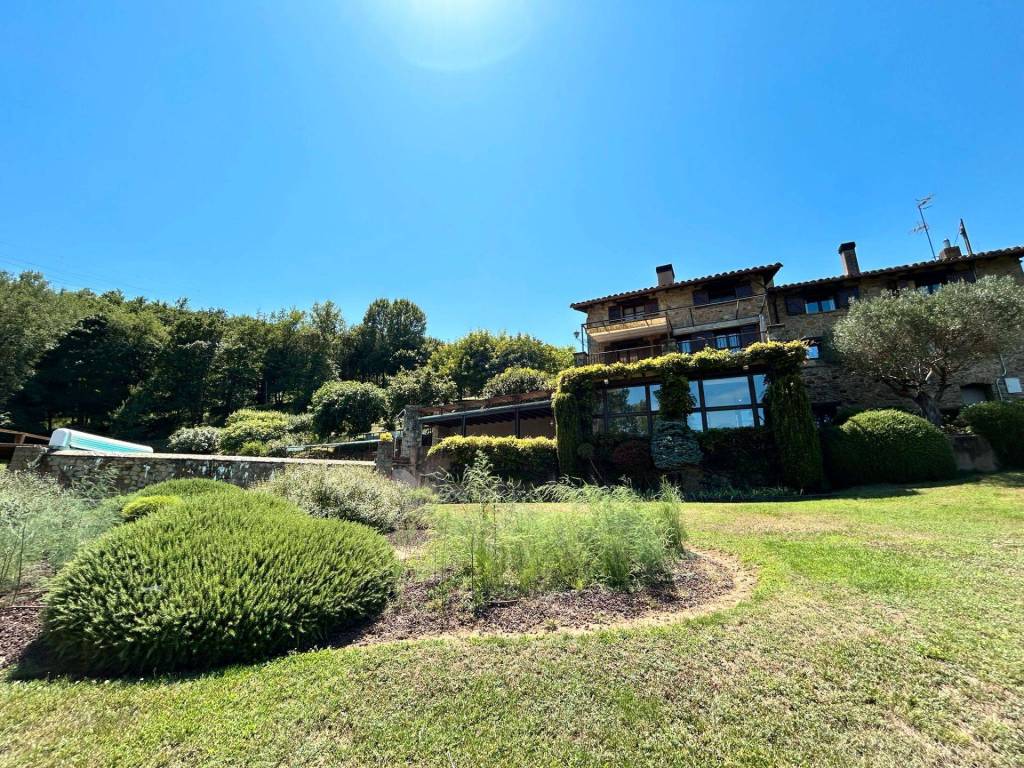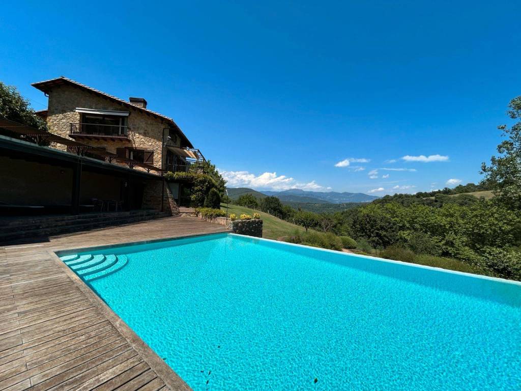 ¡Descobreix aquesta impressionant casa de 517 m² amb vistes espectaculars al Pirineu! Situada en un ampli jardí de 10.000 m² totalment tancat, aquesta propietat combina comoditat, luxe i natura en un entorn privilegiat. A més, compta amb una piscina salada per gaudir de l'estiu i relaxar-te en qualsevol moment i un porxo. L´habitatge disposa de llum i aigua de xarxa, calefacció de gasoil i un garatge amb capacitat per a 3 vehicles, brindant totes les comoditats que necessites. Distribució de la casa principal: Soterrani: Espaiós gimnàs amb sauna, bany complet, galeria amb vistes panoràmiques, celler i accés directe a la piscina, ideal per al benestar i el lleure. Planta baixa: Acollidora sala d'estar, biblioteca, cuina moderna, bany, zona de bugada i una terrassa perfecta per gaudir de l'aire lliure. Primera planta: Segona sala d´estar, despatx, balcó amb vistes, 3 habitacions dobles amb bany en suite, 1 habitació individual, bany addicional i armaris encastats en diverses estances. Cabanya independent de 60 m²: Amb planta baixa destinada a zona de calderes i un primer pis obert amb xemeneia, ideal per a convidats o com a espai addicional per a diferents usos. ¡Descubre esta impresionante casa de 517 m² con vistas espectaculares al Pirineo! Situada en un amplio jardín de 10.000 m² totalmente vallado, esta propiedad combina comodidad, lujo y naturaleza en un entorno privilegiado. Además, cuenta con una piscina salada para disfrutar del verano y relajarte en cualquier momento y un porche.. La vivienda dispone de luz y agua de red, calefacción de gasoil y un garaje con capacidad para 3 vehículos, brindando todas las comodidades que necesitas. Distribución de la casa principal: Sótano: Espacioso gimnasio con sauna, baño completo, galería con vistas panorámicas, bodega y acceso directo a la piscina, ideal para el bienestar y el ocio. Planta baja: Acogedora sala de estar, biblioteca, moderna cocina, baño, zona de colada y una terraza perfecta para disfrutar del aire libre. Primera planta: Segunda sala de estar, despacho, balcón con vistas, 3 habitaciones dobles con baño en suite, 1 habitación individual, baño adicional y armarios empotrados en varias estancias. Cabaña independiente de 60 m²: Con planta baja destinada a zona de calderas y un primer piso abierto con chimenea, ideal para invitados o como espacio adicional para diferentes usos.