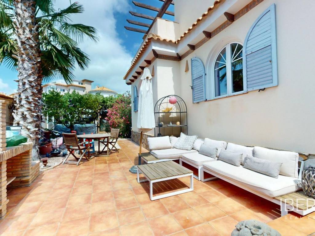 This spacious and move-in ready villa in Orihuela Costa offers everything needed for comfortable living on the Costa Blanca. The property features five full-sized bedrooms and three complete bathrooms, including a luxurious bathroom with jacuzzi. Spread over multiple levels, the villa offers bright, open living spaces, a fully equipped kitchen, and several lounge areas.