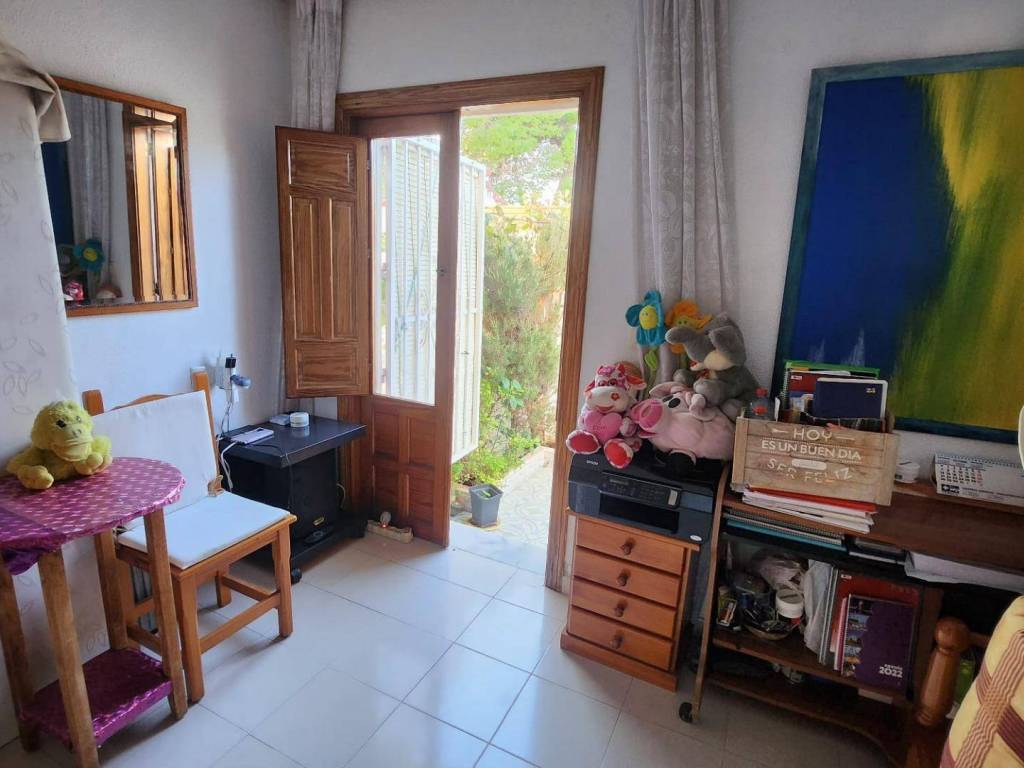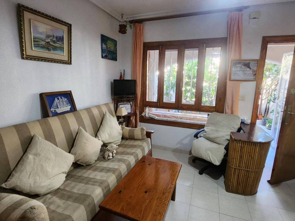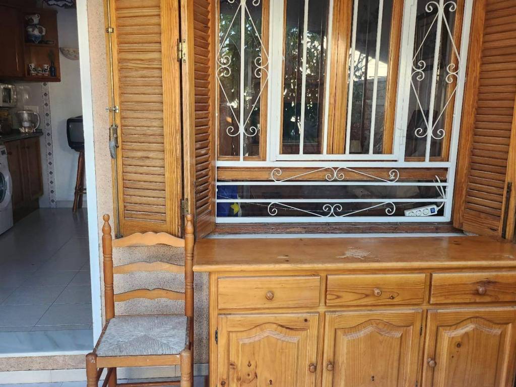 Descubre este encantador bungalow de planta baja situado en la hermosa ciudad de Torrevieja, específicamente en la tranquila zona de Aldea del Mar. Este acogedor bungalow cuenta con una amplia habitación doble que garantiza confort y descanso . Además, dispone de un baño espacioso ideal para tus necesidades diarias . Uno de los grandes atractivos es su luminosidad ya que se trata completamente exterior ; también te ofrece dos agradables terrazas: una delantera rodeada por exuberante vegetación perfecta para relajarte al aire libre o recibir visitas, y otra trasera equipada con barbacoa donde podrás organizar inolvidables reuniones familiares o entre amigos. La cocina tipo office comunicada directamente al salón crea un ambiente abierto muy acogedor . Esta propiedad está a solo cinco minutos caminando de la famosa Playa Los Locos, lo cual añade aún más valor a esta magnífica oferta inmobiliaria. No pierdas esta oportunidad única ven a visitarlo!