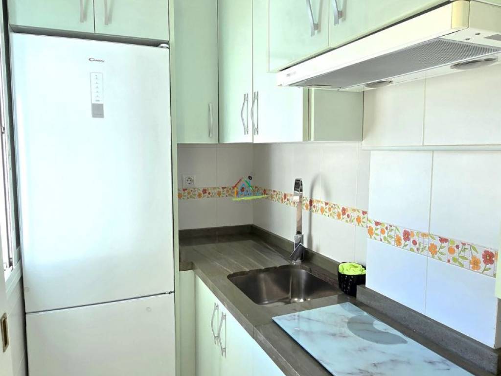 La cocina, ahora independiente, se presenta con mobiliario contemporáneo y electrodomésticos de última generación, aportando funcionalidad y elegancia. El baño, también renovado en su totalidad, cuenta con una moderna placa de ducha y acabados de alta calidad.