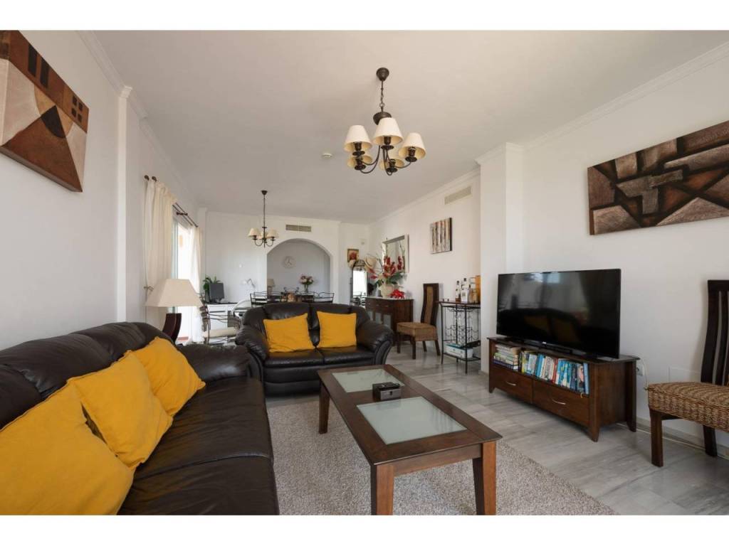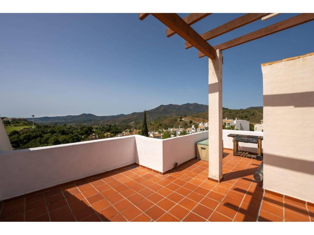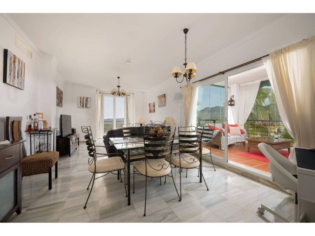 La propiedad se encuentra en inmejorables condiciones de conservación. Se distribuye en amplio salón comedor con vistas al campo de golf, espaciosa y luminosa cocina totalmente equipada y dos dormitorios dobles ambos en suite. Desde el salón accedemos a una preciosa y acogedora terraza totalmente acristalada y desde donde accedemos a la parte de arriba con una impresionante y amplia terraza con trastero y unas vistas excepcionales al campo y las montañas. Parking privado, trastero cerrado , dos piscinas y jardines comunitarios, y una ubicación inmejorable hacen de este ático una oportunidad única de compra que no puede dejar escapar.