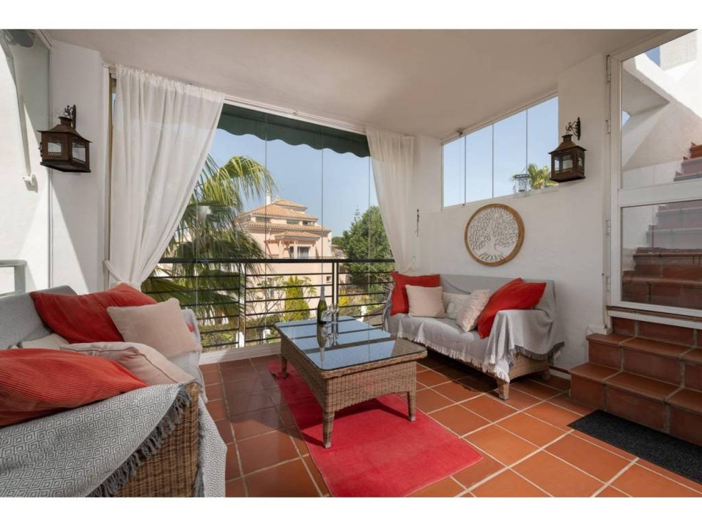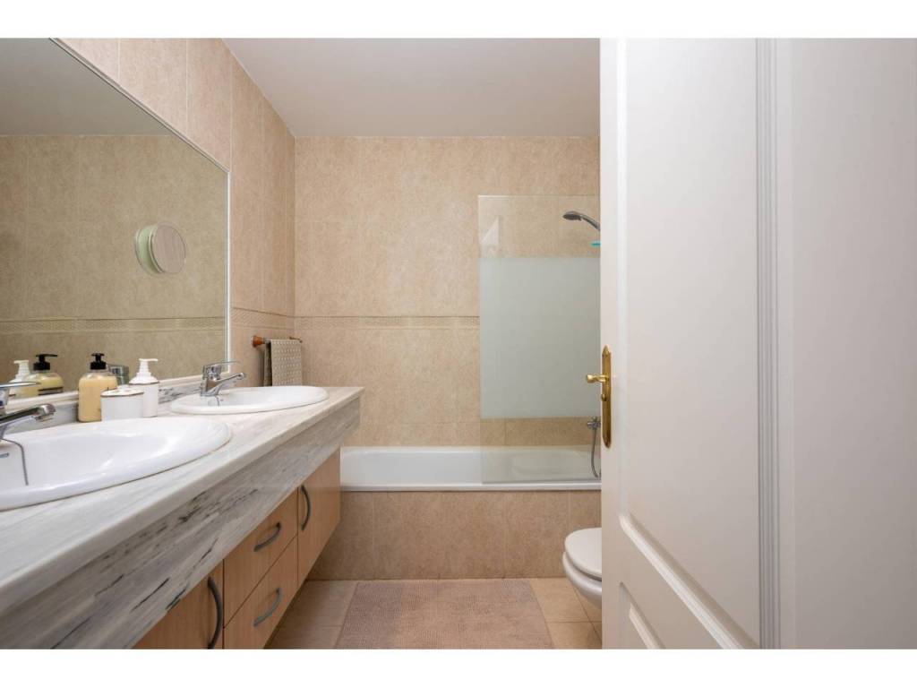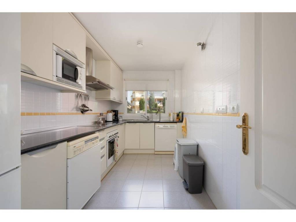 The property is in excellent condition. It comprises a spacious living-dining room with views of the golf course, a spacious and bright fully equipped kitchen and two double bedrooms, both en suite. From the living room, we access to a beautiful and cozy fully glazed terrace which leads to the upper floor with an impressive and spacious terrace with a storage room and exceptional views of the countryside and mountains. Private parking, a locked storage room, two communal pools and gardens, and an unbeatable location make this penthouse a unique opportunity not to be missed.