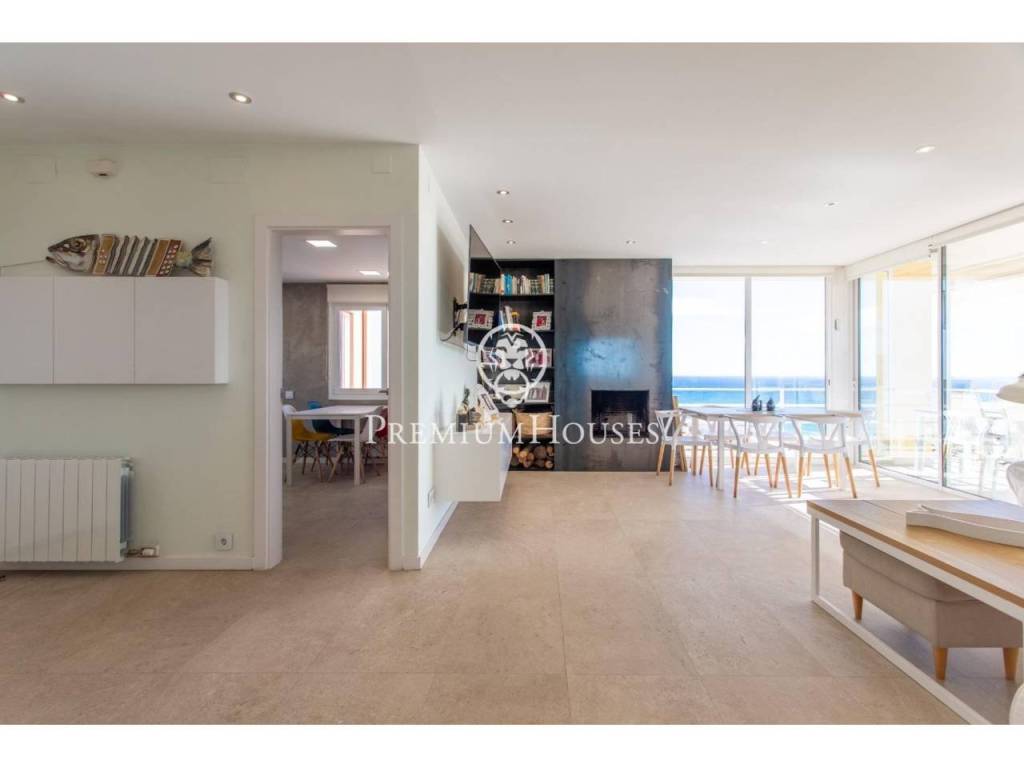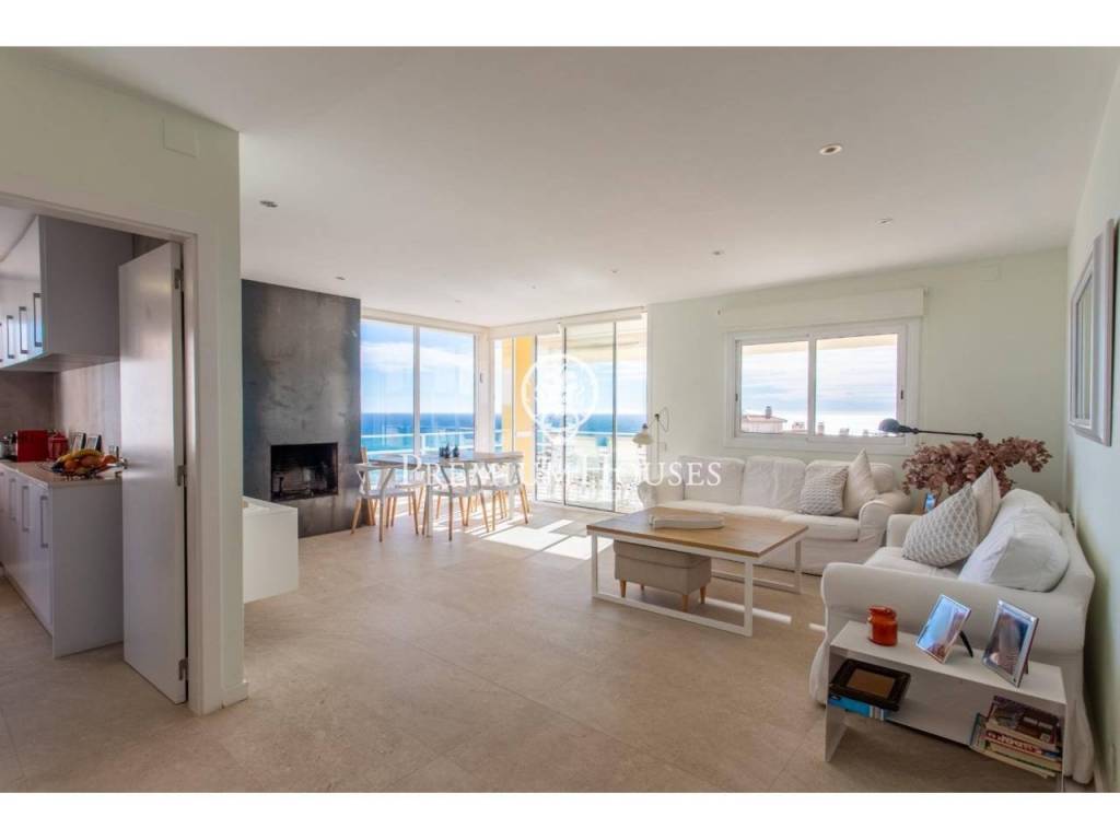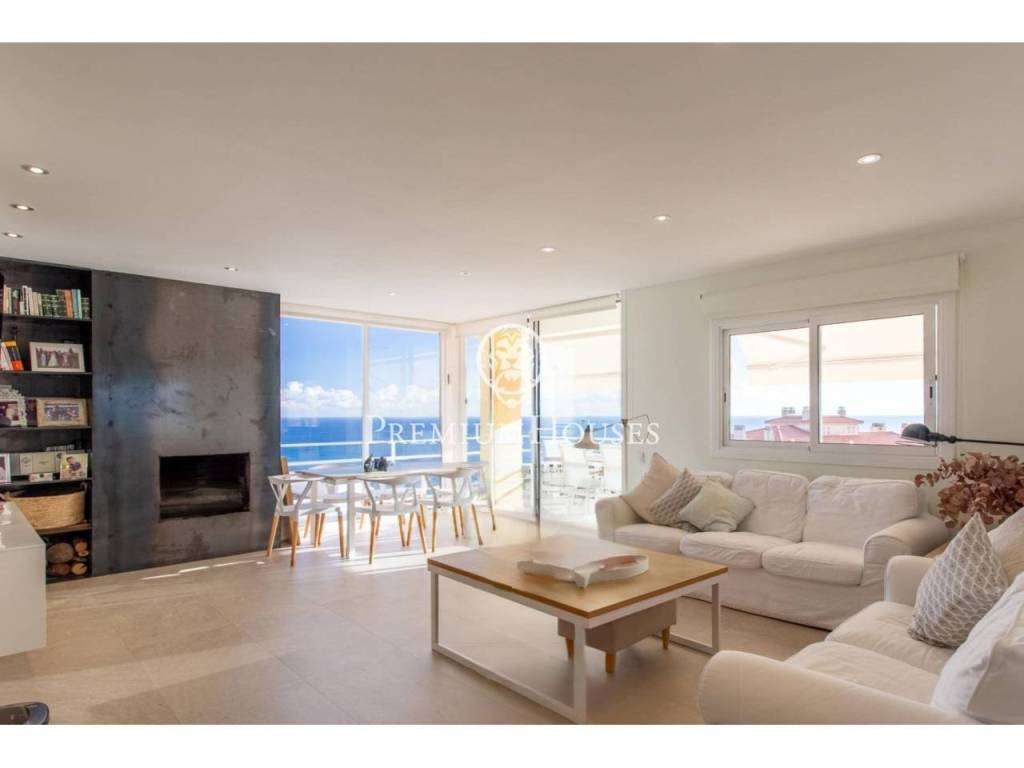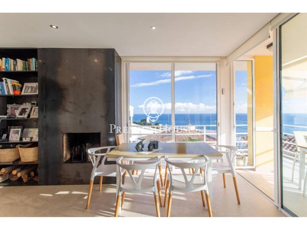 Un amplio salón-comedor con chimenea se abre a una terraza con vistas panorámicas al mar, perfecta para comidas al aire libre o tardes relajadas.