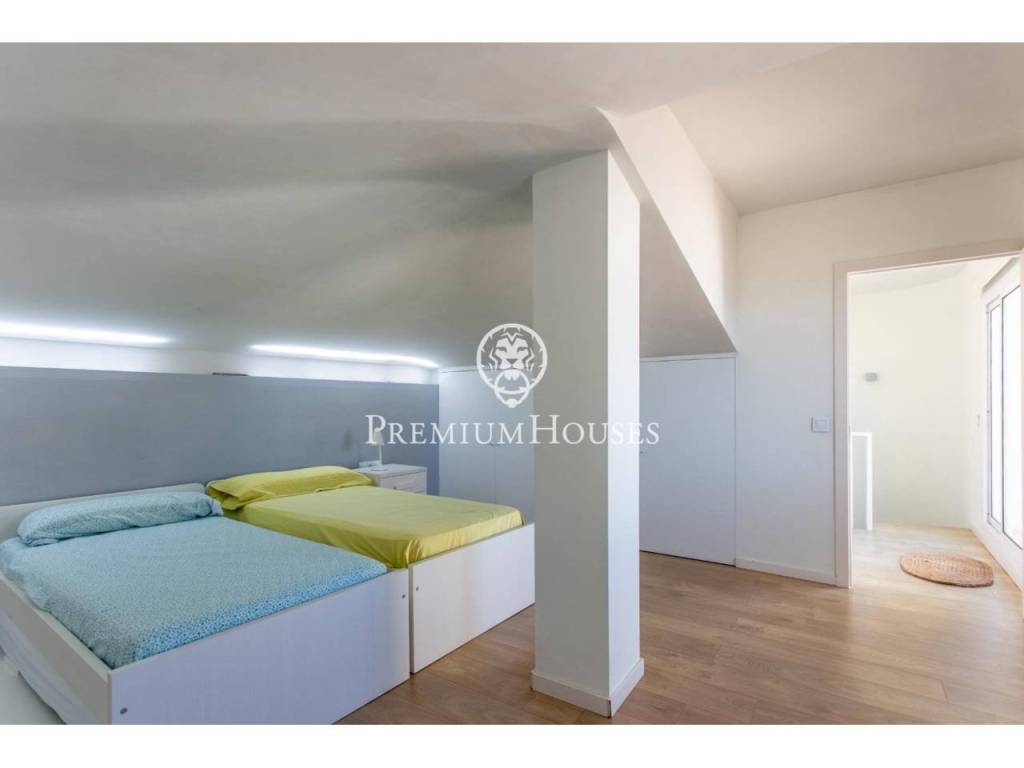 En la planta superior, una buhardilla luminosa se utiliza actualmente como dormitorio, con acceso a una terraza privada desde donde el mar parece extenderse hasta el horizonte. Esta zona ofrece la posibilidad de cerrarse en el futuro para crear un espacio adicional.