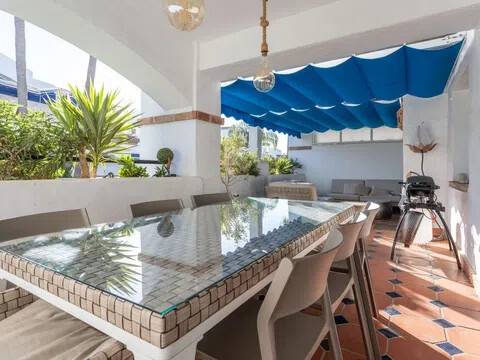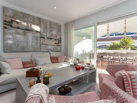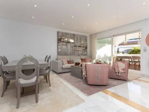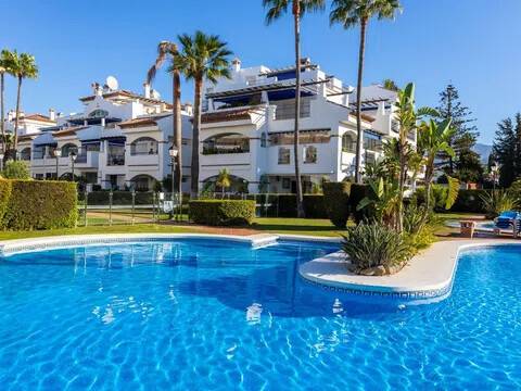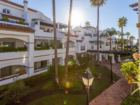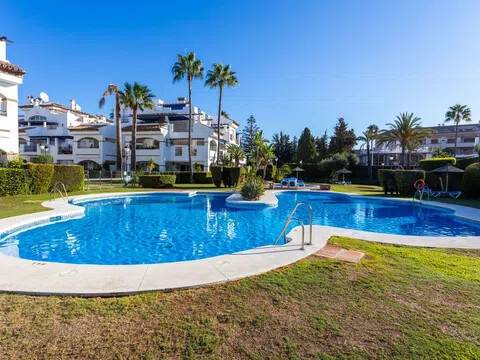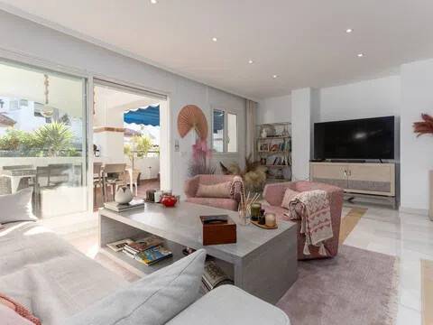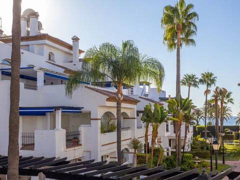 Este espléndido apartamento, ubicado en primera línea de playa y del paseo marítimo de San Pedro de Alcántara, ofrece una oportunidad inmejorable para quienes buscan un estilo de vida costero. Situado en una primera planta, cuenta con 120m² distribuidos en dos amplios dormitorios y dos elegantes baños, complementados por una acogedora terraza de 35m². La propiedad se encuentra dentro de una lujosa urbanización privada, la cual garantiza su tranquilidad con seguridad las 24 horas, exuberantes jardines y una piscina comunitaria. Su ubicación es inmejorable, a pocos minutos de Puerto Banús y del centro de San Pedro de Alcántara, rodeada de una vasta oferta de servicios e instalaciones. Además, este inmueble incluye plaza de garaje y trastero, un valor añadido que completa esta excepcional oferta. Sin lugar a dudas, esta propiedad merece ser visitada.