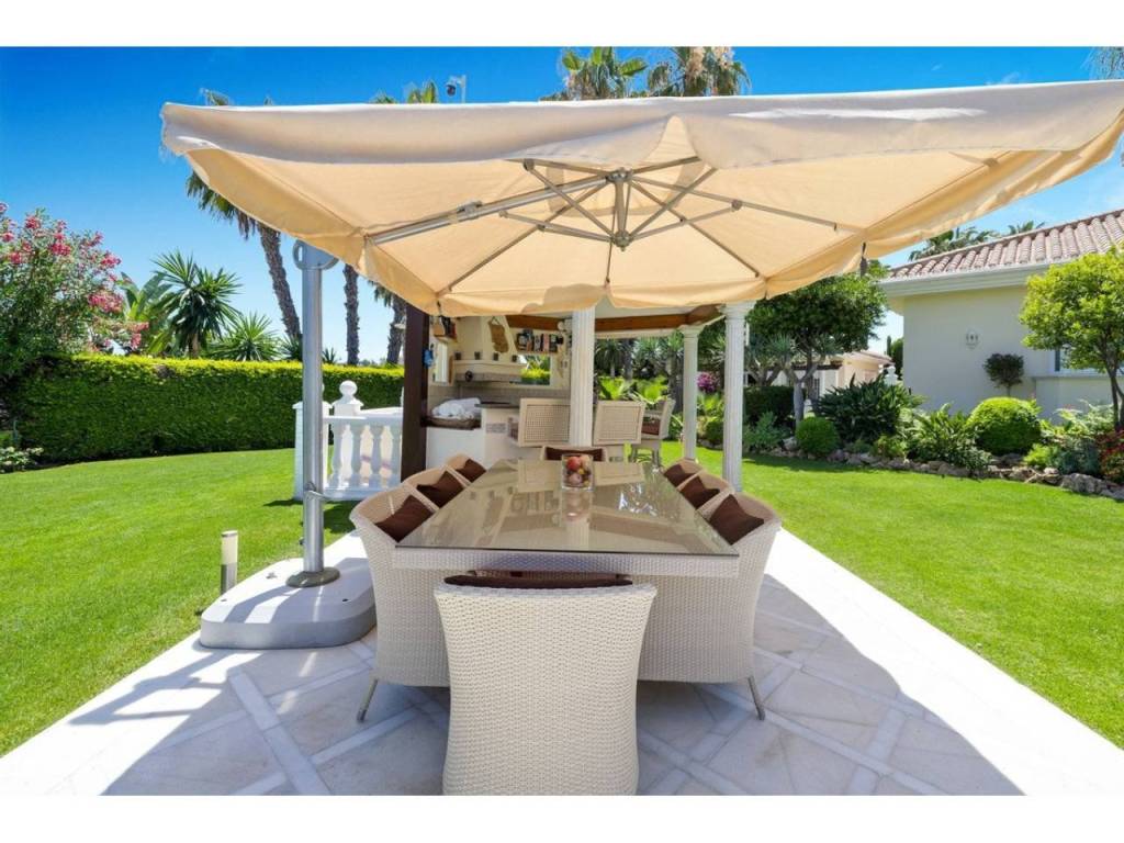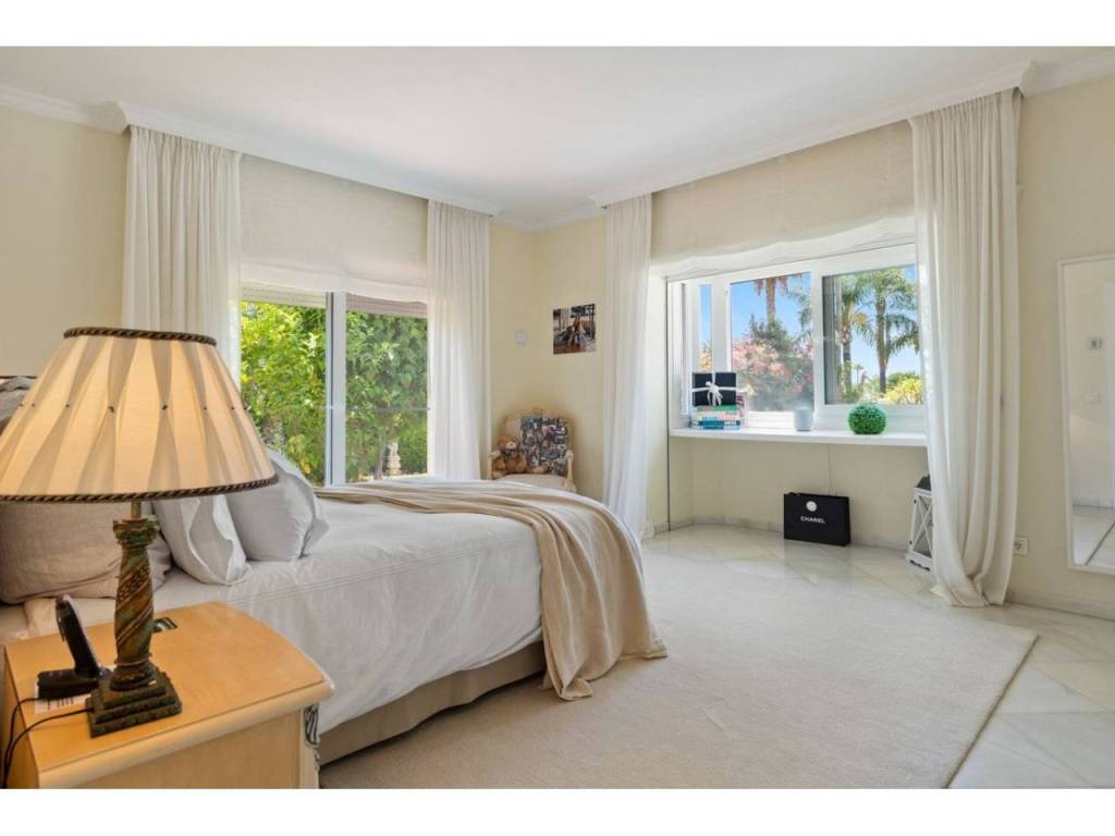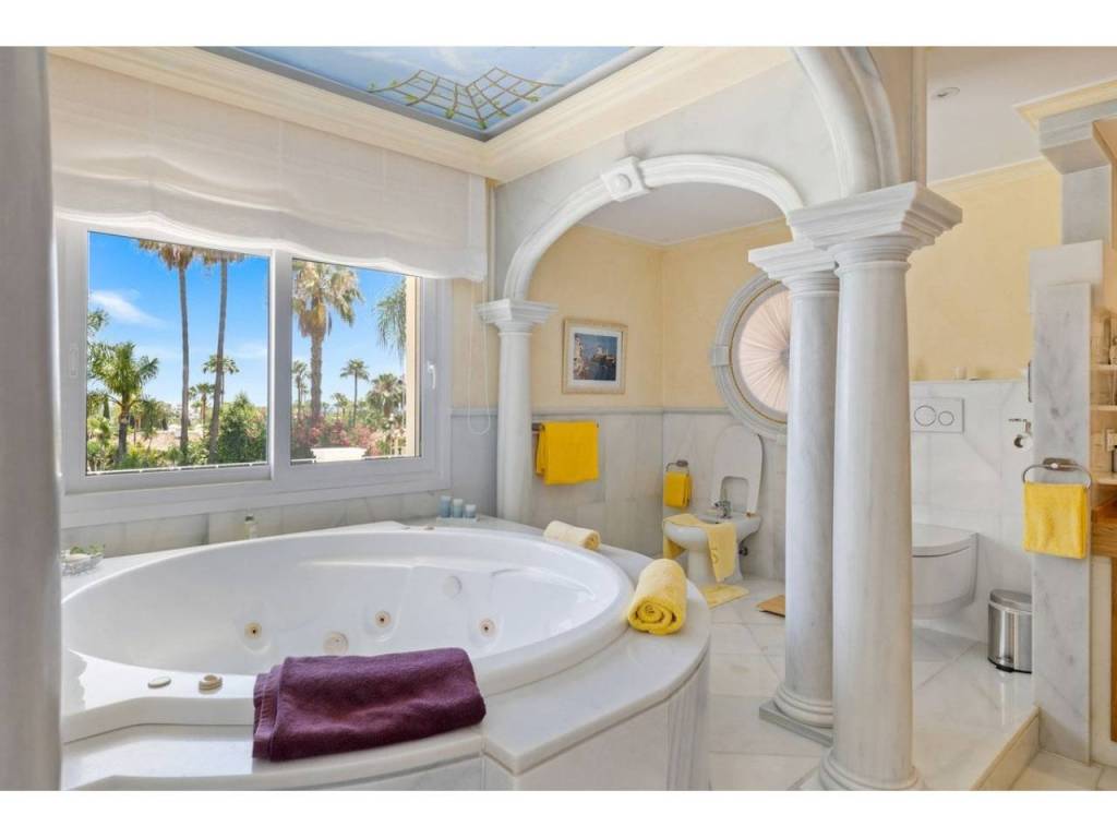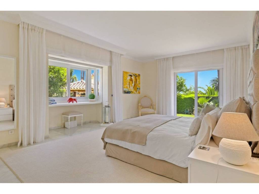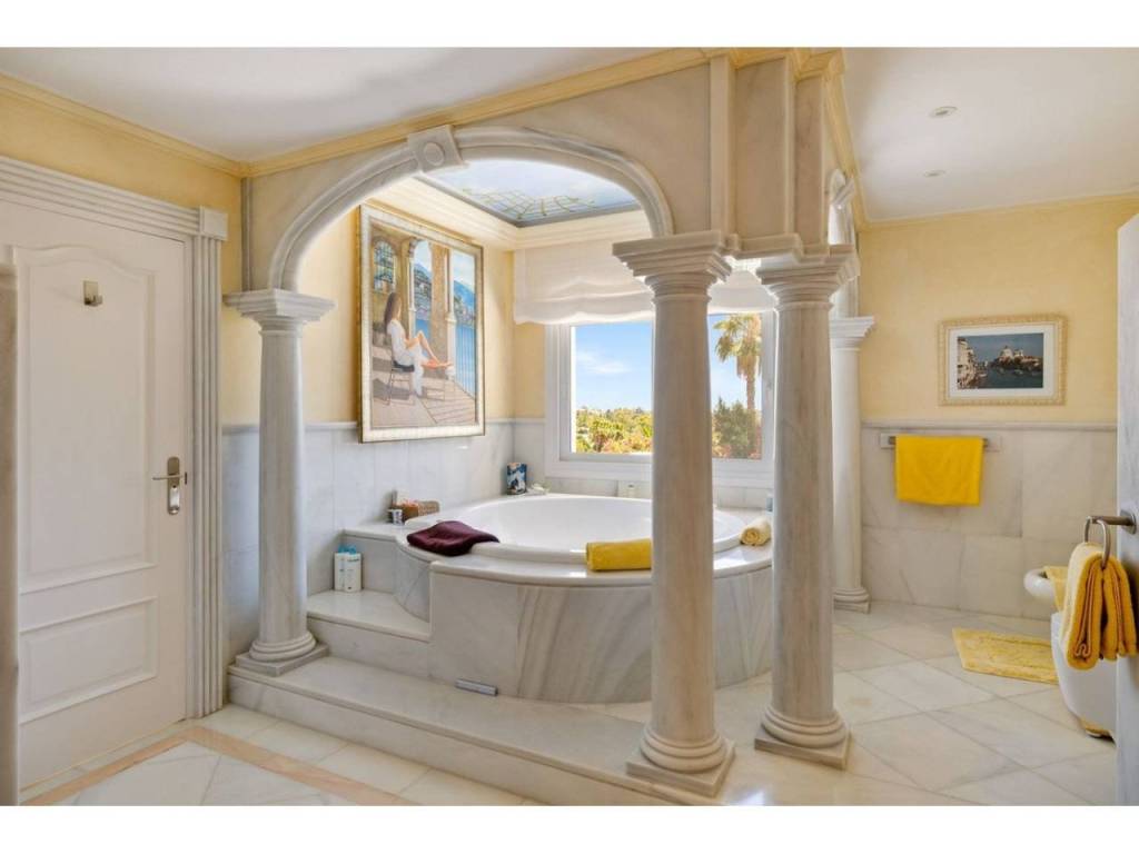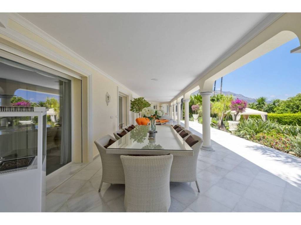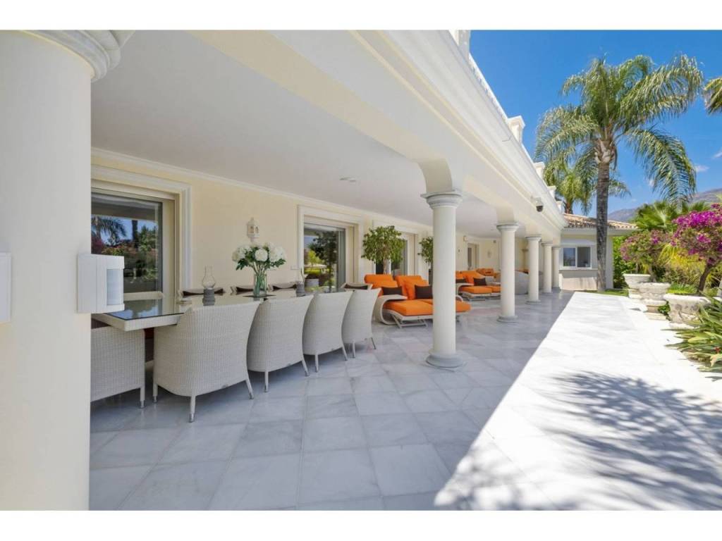 Una gran villa recientemente renovada con una fusión perfecta entre diseño contemporáneo y estilo andaluz. Ubicado en la cotizada zona residencial, orientación sur con vistas a La Concha. Privado y tranquilo. Cerca de todos los servicios y de los clubes de golf de Las Brisas y Los Naranjos.