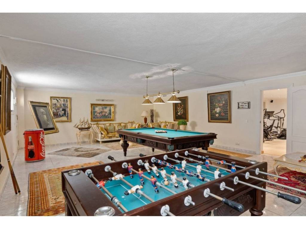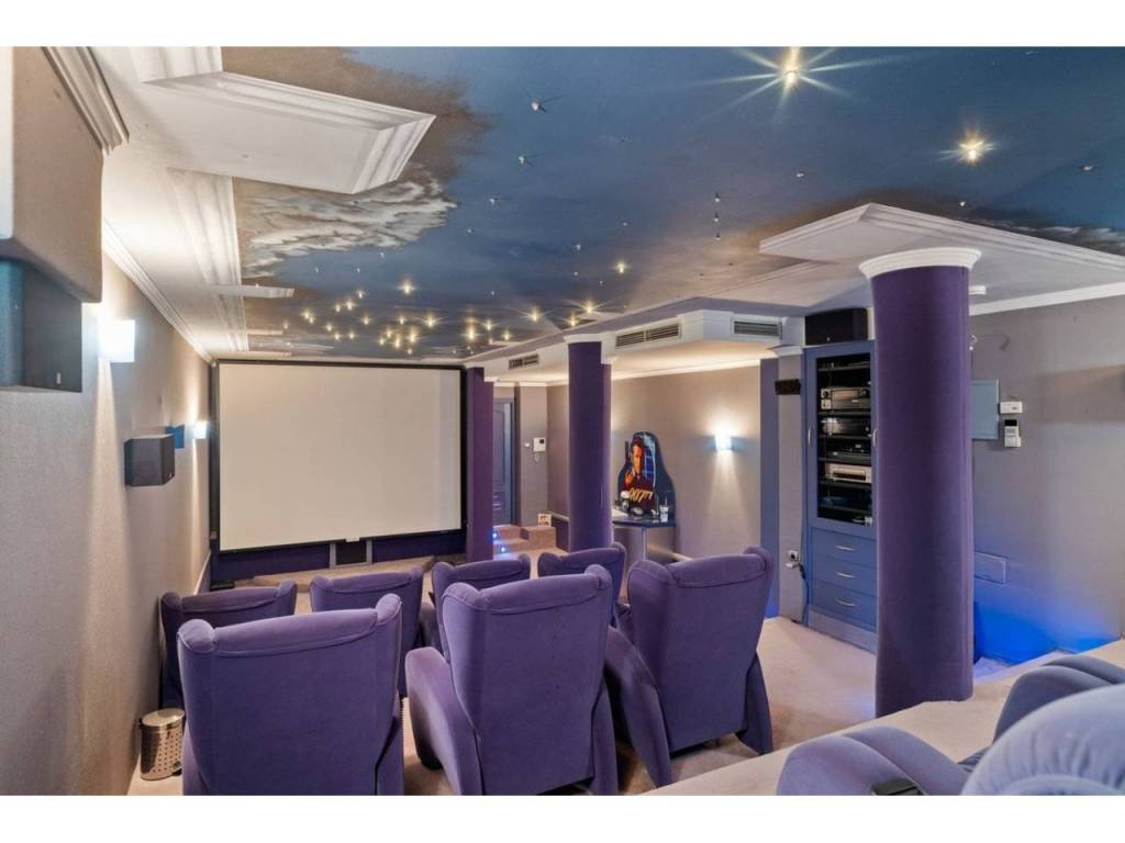 Planta inferior: Zona de ocio, bodega, sala de cine, gimnasio, garaje para 6 coches y trastero.