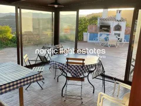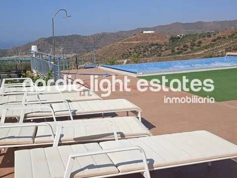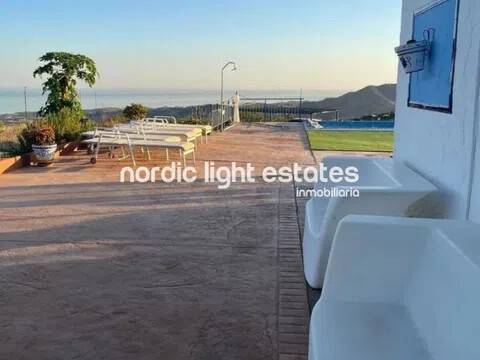 Imponente villa rústica en Almayate Alto (Málaga), ofreciendo espectaculares vistas al mar en un entorno natural, a tan solo 15 minutos en coche de la playa. Esta propiedad se sitúa en pleno campo, ofreciendo una amplia vivienda independiente perfecta para aquellos que buscan tranquilidad sin renunciar a la proximidad al mar. El acceso a la propiedad es muy cómodo, ya que el carril está prácticamente hormigonado en su totalidad, salvo un pequeño tramo en buenas condiciones. La vivienda, junto con la piscina, fue reformada en 2018, y en 2022 se añadió un amplio porche de 40m² con acristalamiento de PVC imitación a madera, que no está incluido en los 144m² construidos de la casa. La villa se asienta sobre una base de 750m² de hormigón impreso, rodeada de arriates con sistema de riego automático. La finca cuenta con pozo propio legalizado, suministro eléctrico y dos grandes depósitos de agua con capacidad de 15.000L y 133.000L. La vivienda principal dispone de 4 dormitorios, 3 baños, y una cocina abierta al salón-comedor, que a su vez da acceso al porche cubierto y a la piscina. Al mismo nivel que el porche se encuentra la piscina con su ducha. En una segunda altura, la propiedad cuenta con una parcela llana de 2.500m², que incluye dos trasteros de obra, un huerto con riego automático y algunos árboles frutales, además de una amplia zona de aparcamiento. En un tercer nivel, se sitúan 4 invernaderos con malla, actualmente dedicados al cultivo de pitayas, construidos en 2021. Esta villa ofrece una oportunidad única para disfrutar de un estilo de vida rural con todas las comodidades modernas, en un entorno natural incomparable. Póngase en contacto con Nordic Light Estates para concertar una visita o para obtener más información. Esta propiedad tiene la referencia: NL202364.