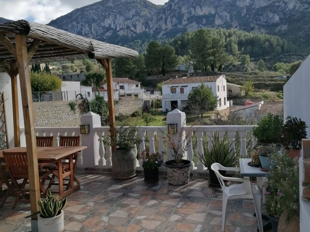 Casa de pueblo en la población de quatretondeta provincia de Alicante, un lugar tranquilo donde descansar y vivir rodeado de naturaleza. La casa cuenta con salón con chimenea, WiFi, cocina amplia con electrodomésticos y despensa, 2 dormitorios, 2 baños uno de ellos de visitas, 1 habitación, 2 armarios empotrados, terraza grande con barbacoa, pergola y bonitas vistas a la montaña. Un lugar donde desconectar y descansar, hay numerosas rutas de senderismo, se puede teletrabajar hay buena red de fibra óptica.
