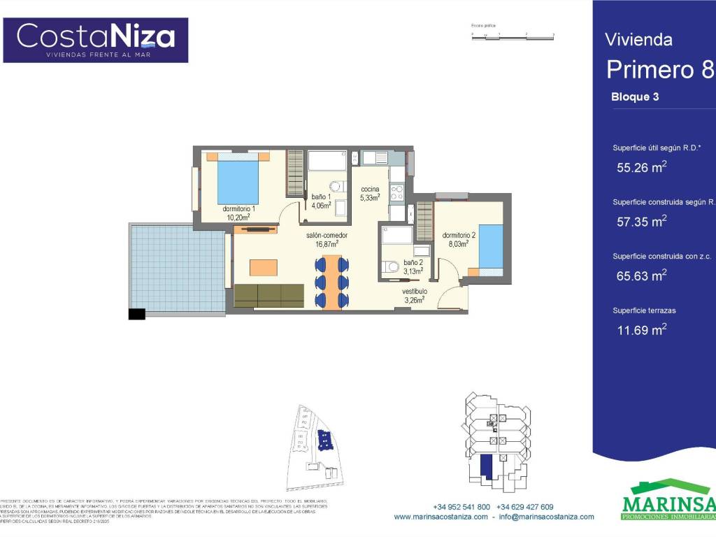 Apartamento en venta de nueva construcción en Torre del Mar ( Valle Niza) la vivienda esta en 1 linea de playa , tiene unos 57 m2, consta de 2 dormitorios, 2 baños completos, salón-comedor, cocina equipada, amplia terraza, aire acondicionado, trastero, garaje, piscina comunitaria y a solo 50 metros de la playa.