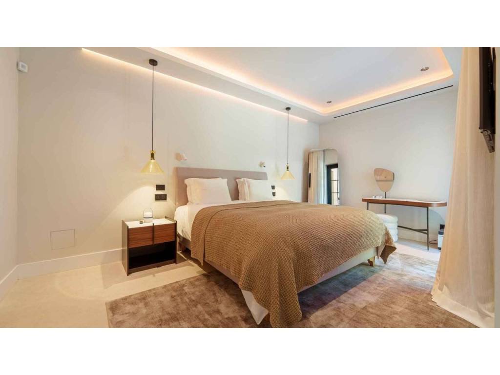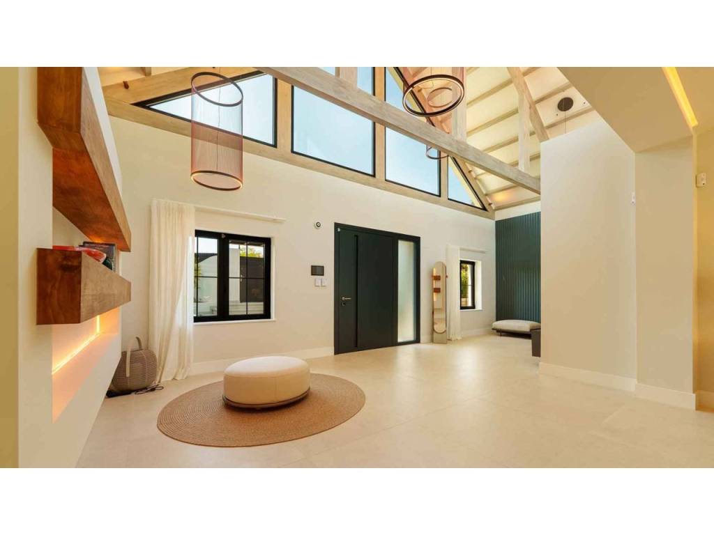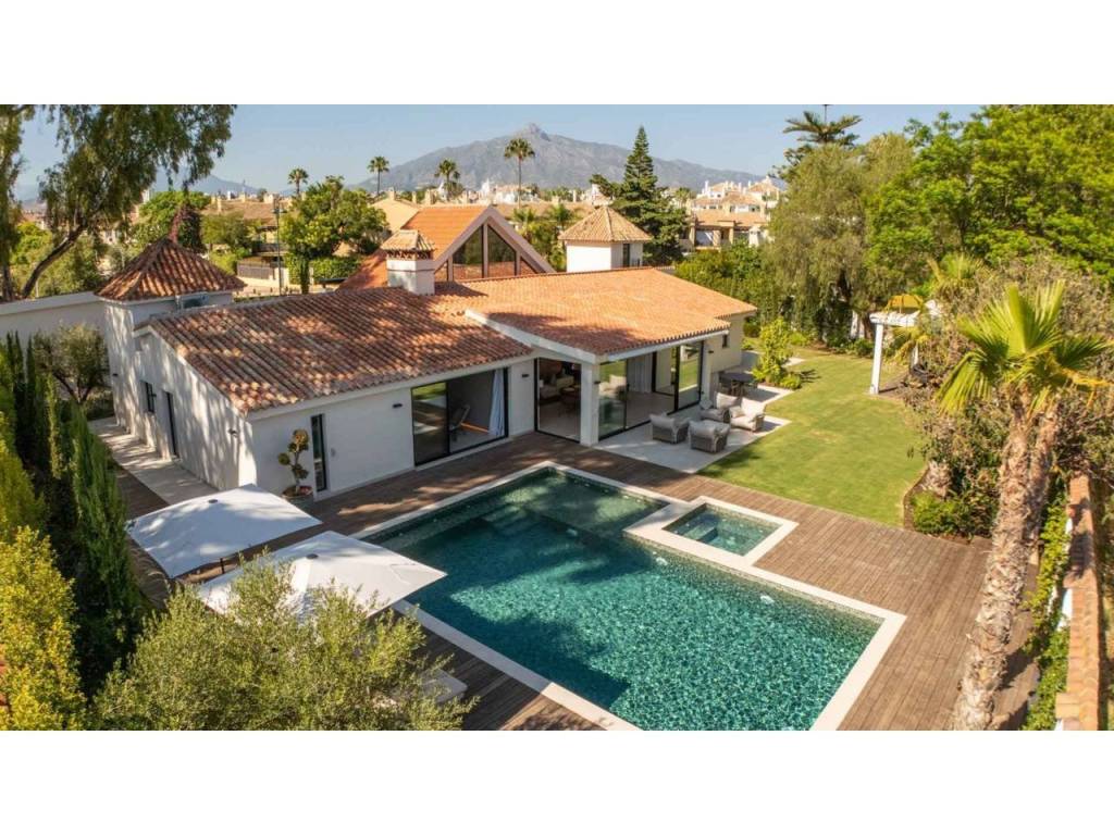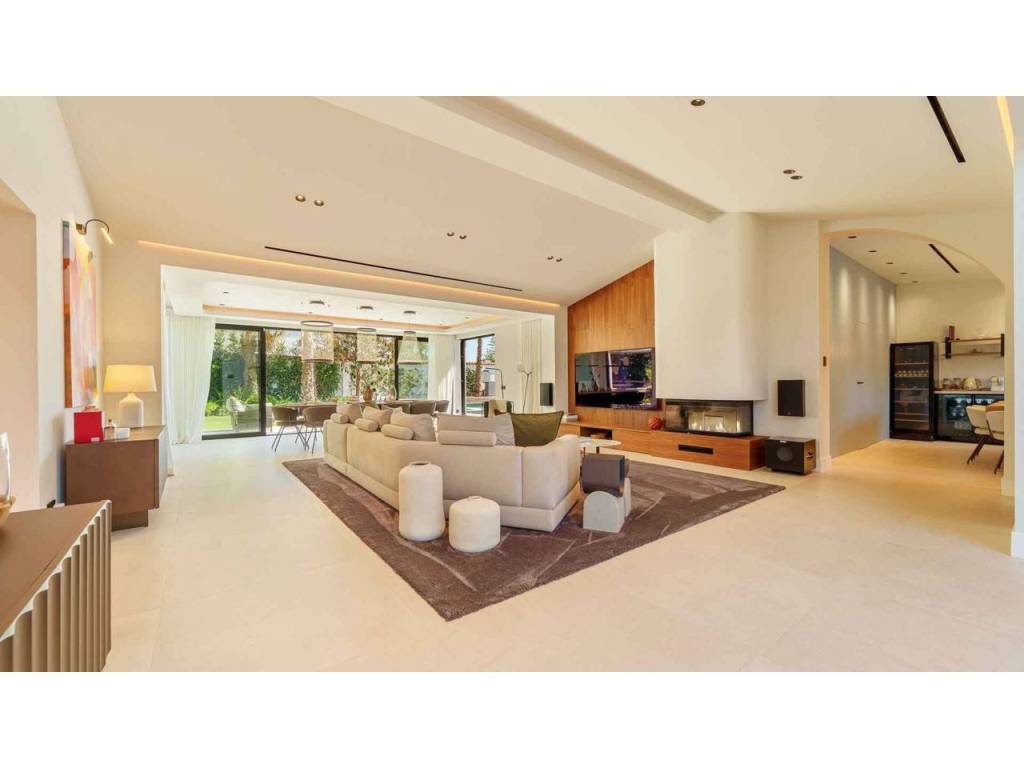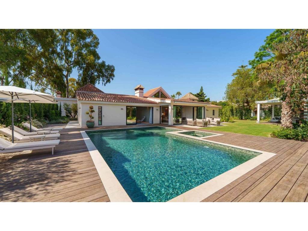 Villa cerca de Puerto Banús en una sola planta en venta. Ubicada a escasos minutos de la playa, esta villa de una sola planta combina privacidad, diseño moderno y funcionalidad en un entorno exclusivo. Situada sobre una amplia parcela rodeada de vegetación, la propiedad cuentaa con detalles arquitectónicos llamativos como su hall de entrada de doble altura con un techo geométrico distintivo. Las líneas modernas, los materiales de alta gama y la luminosidad natural en todos los espacios crean una atmósfera acogedora.
