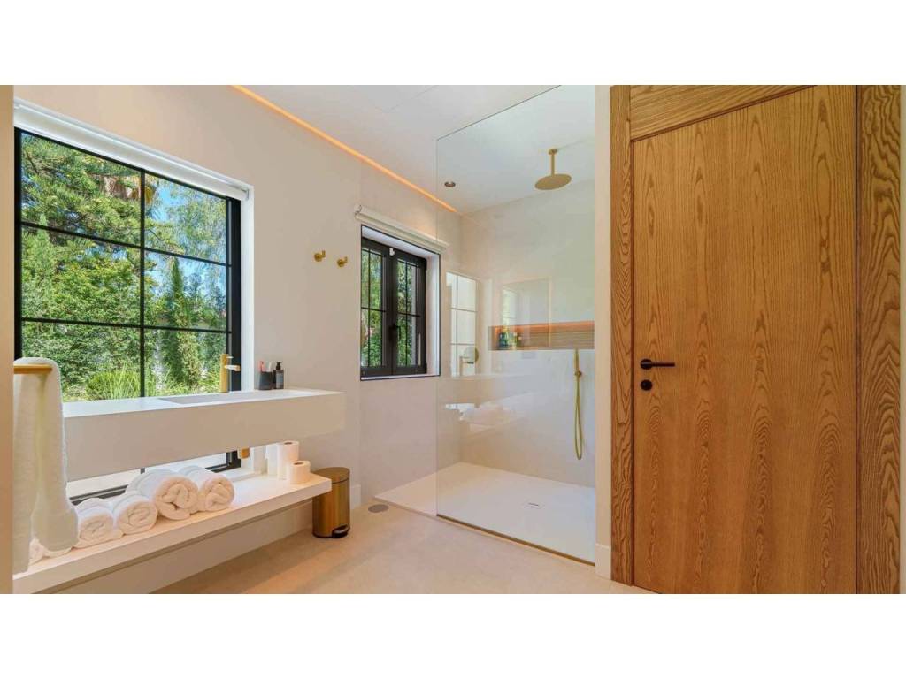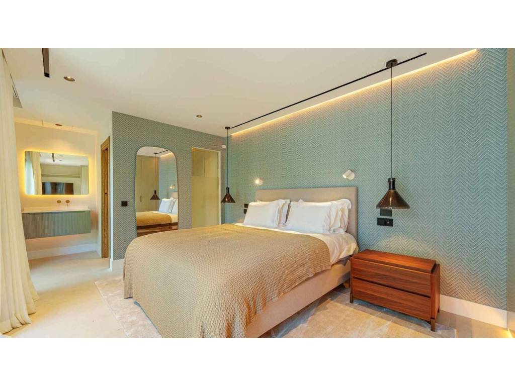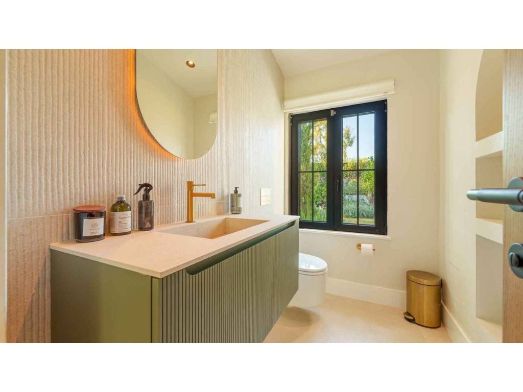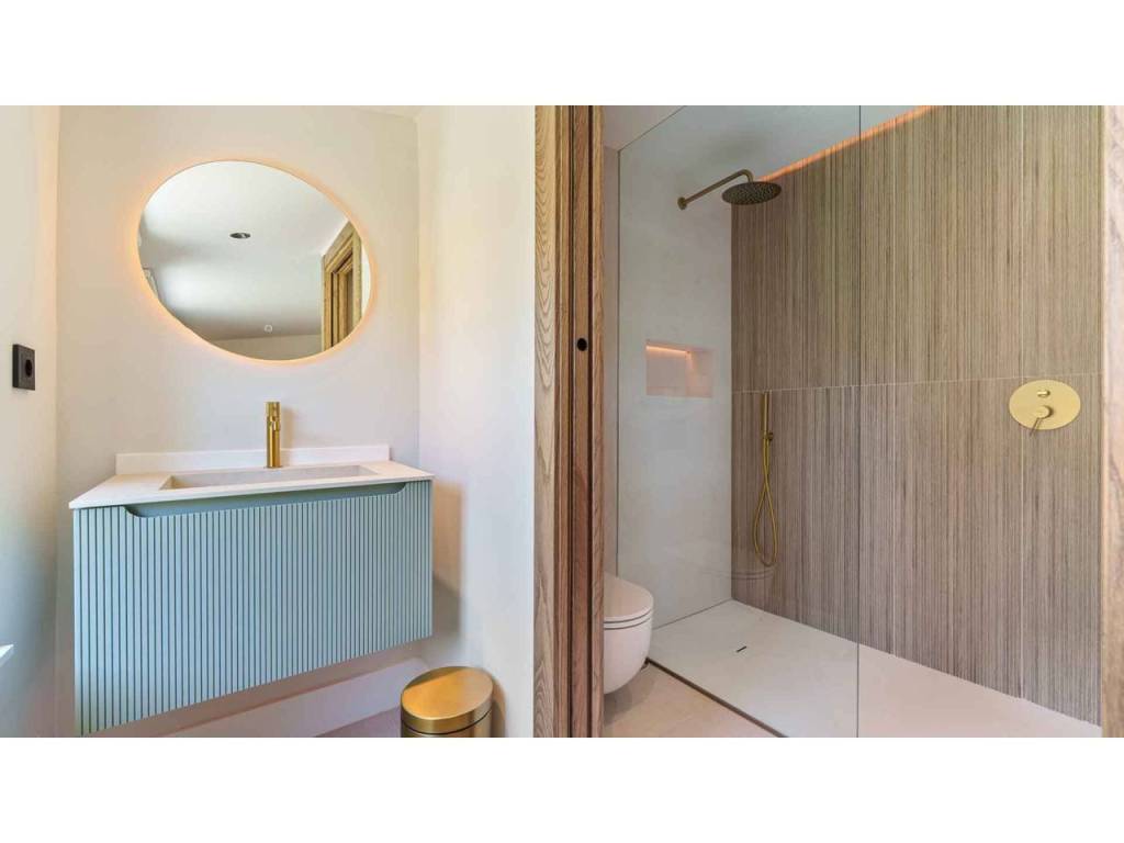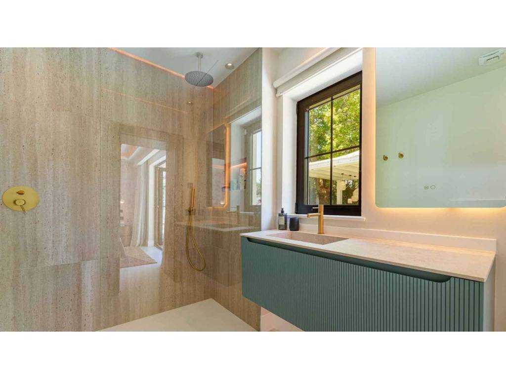 En el interior, el diseño de planta abierta incluye una cocina completamente equipada con isla central, un comedor amplio y un salón principal con chimenea, ideal para reuniones familiares. Cada una de las cinco habitaciones ha sido diseñada con amplitud y confort, destacando especialmente la suite principal, que se abre directamente a la terraza de la piscina y dispone de un baño en suite con acabados de lujo, incluyendo una bañera independiente.