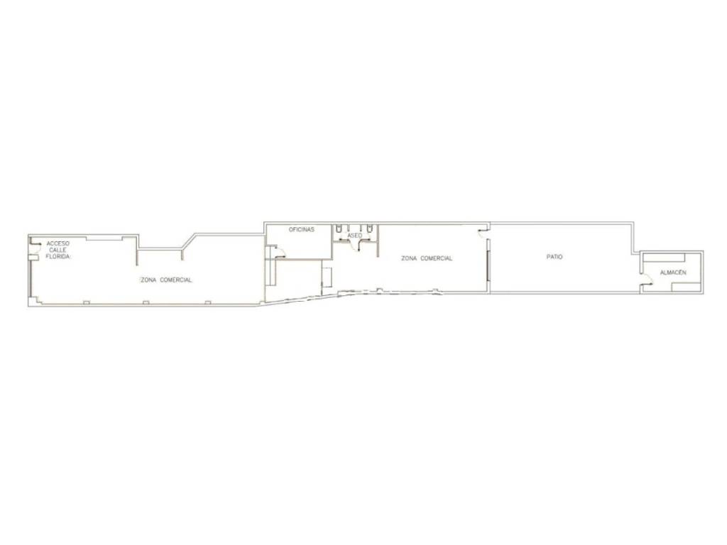 Dispone de doscientos veintiún metros cuadrados útiles (221 m2), que actualmente se utiliza como espacio de atención al público, una oficina, un aseo con dos espacios de inodoro y una amplia terraza-jardín al fondo de setenta metros cuadrados (70 m2).