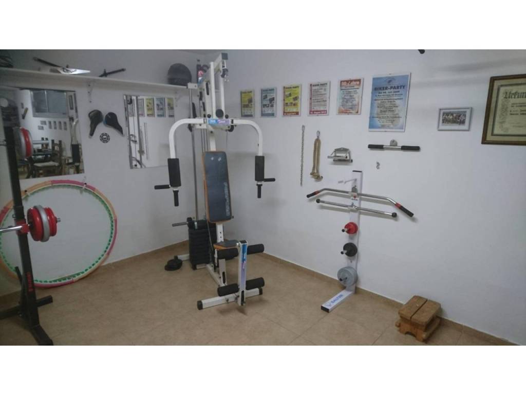 La vivienda cuenta con un luminoso salón-comedor, cocina totalmente equipada, dos dormitorios dobles y un baño con ducha y aseo. Además, dispone de una amplia zona subterránea adicional actualmente utilizada como gimnasio y taller.