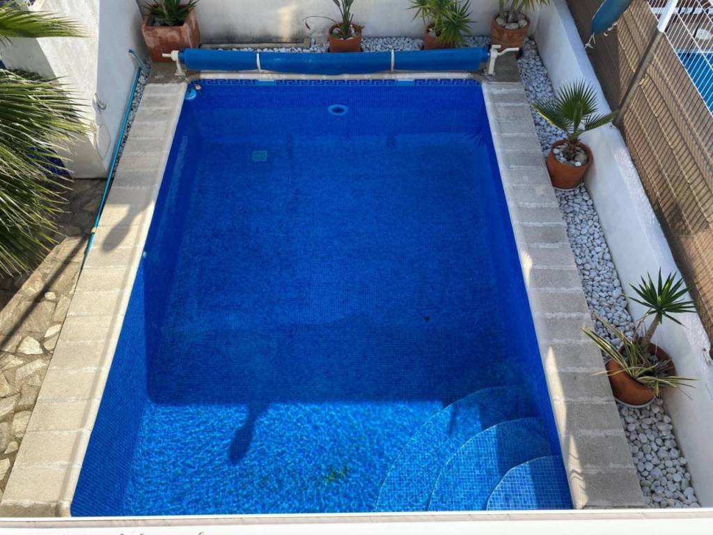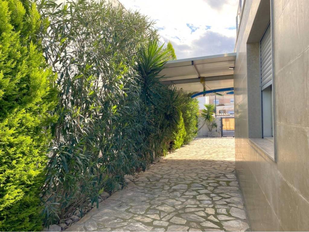 En el exterior, destaca una amplia terraza cubierta ideal para comer y relajarse durante todo el año. El jardín de bajo mantenimiento rodea la piscina privada, creando el lugar perfecto para disfrutar del clima mediterráneo. La terraza solárium ofrece impresionantes vistas al mar, al castillo y a la montaña, un rincón ideal para contemplar la puesta de sol.