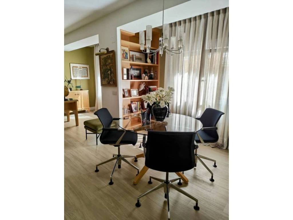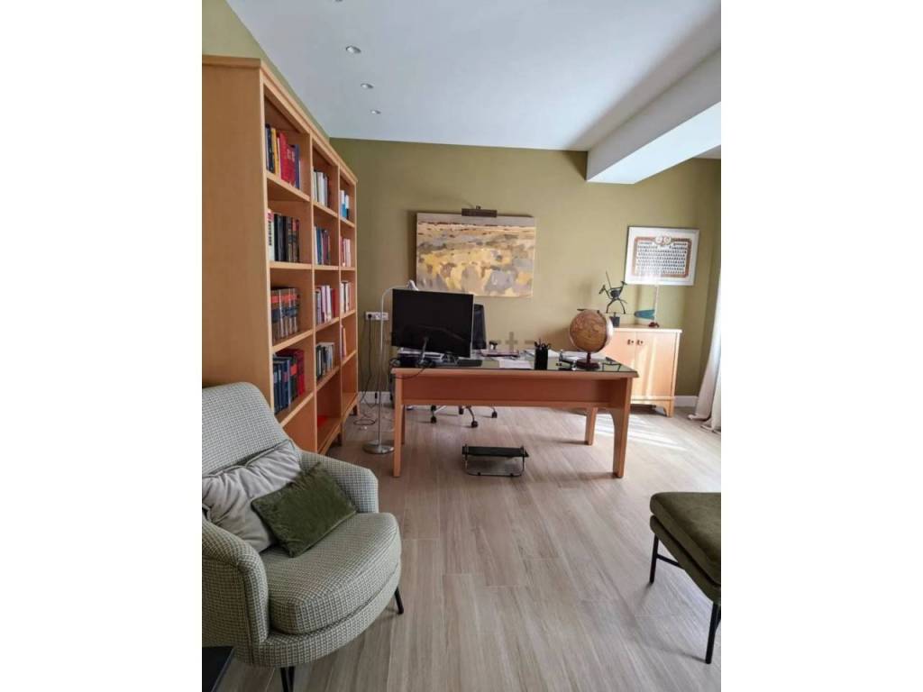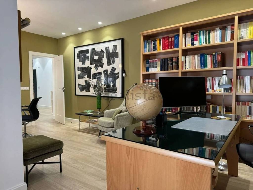 También dispone de un despacho de trabajo de 25 m2, con sala de reuniones con grandes ventanas a la Gran Vía.
