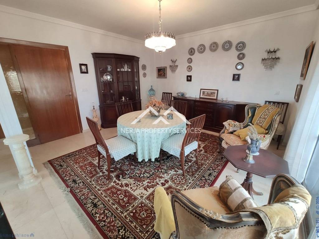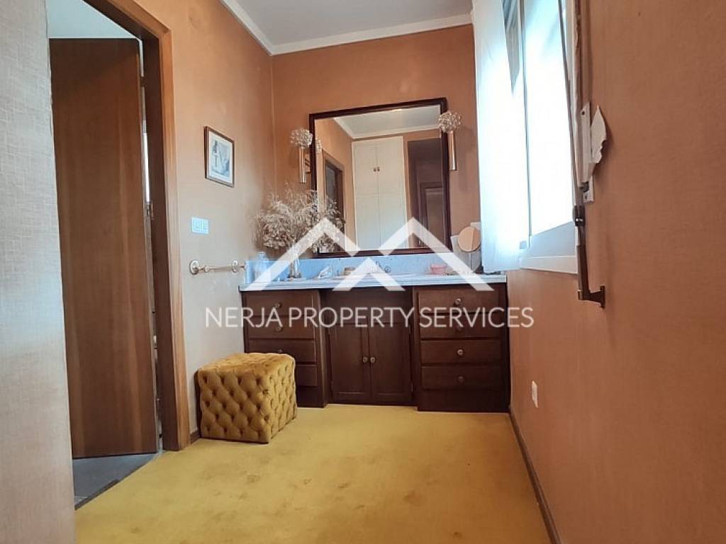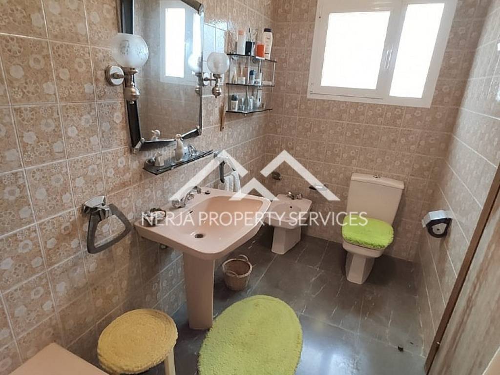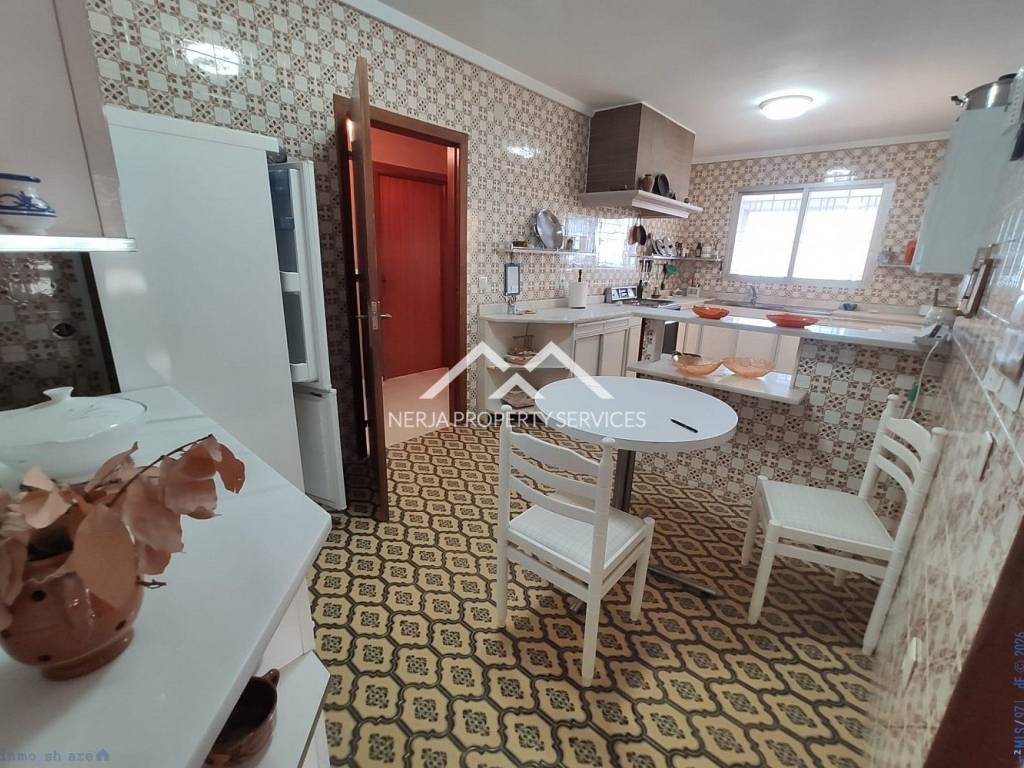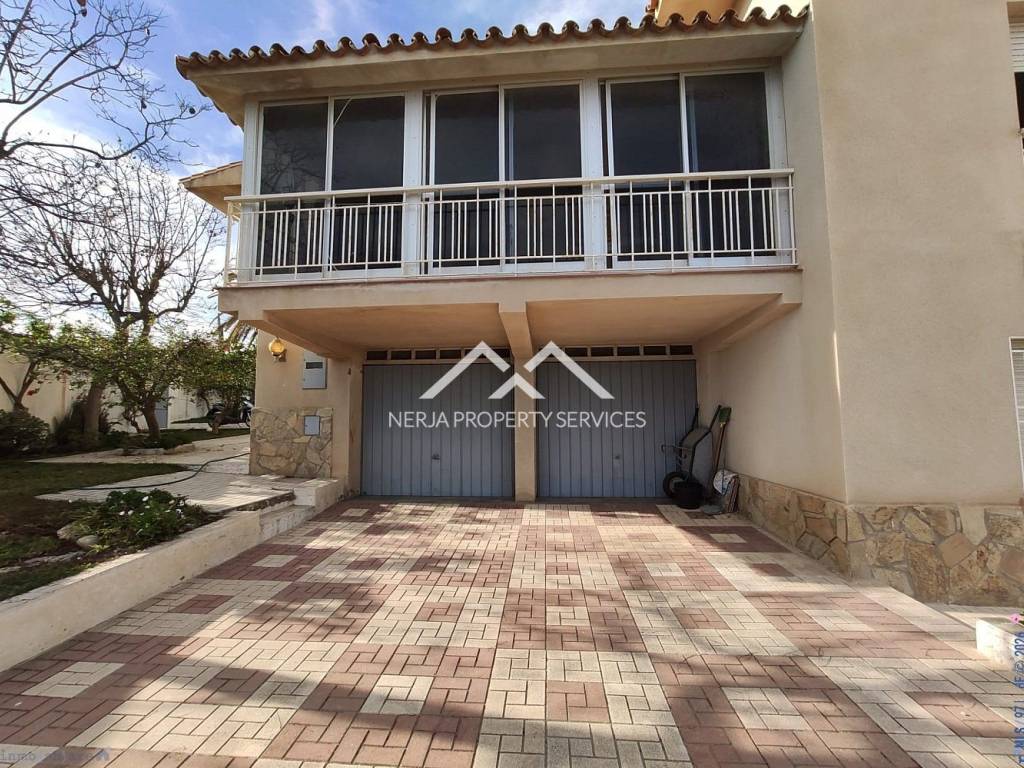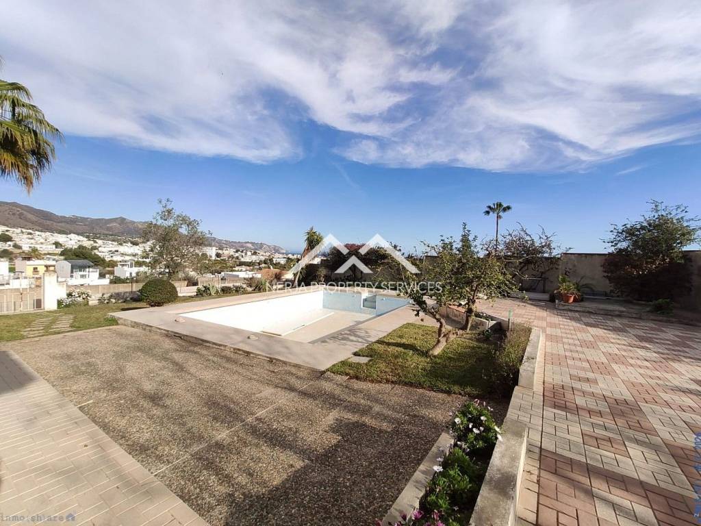 Magnifica casa situada a las afueras de Nerja en vía Castillo Alto, en una de las zonas más privilegiadas de Nerja, sobre una loma, con el mar a 1,5 kms y con la sierra a sus espaldas. Excelentes y relajantes vistas, que no se ven perturbadas por ninguna otra construcción. Se trata de una vivienda con más de 30 años de antigüedad, fue construida por sus propietarios que la han usado siempre como primera vivienda. La casa principal dispone de hall, 4 habitaciones, tres baños completos, salón comedor, cocina de unos 20m2, tres terrazas una de ellas acristalada con vistas al mar, deposito receptor de agua de lluvias, trastero. En la planta baja dispone de un amplio estudio con aseo, y apartamento para invitados, con concina, baño, y dormitorio independiente, porche y un amplio jardin de hierba natural. La casa dispone de jardines, piscina privada y dos plaza de garaje cubiertas. El propietario además era un arquitecto constructor de éxito en America, y este proyecto fue su vivienda donde disfrutar de su retiro. Las calidades de construcción son inmejorables, impensables para nuevas construcciones actuales, como demuestra entre otras cosas, el que la casa no tenga ni una mínima grieta, ni ningún otro desperfecto. En su interior se encuentran los mejores materiales disponibles en la época, como por ejemplo los mármoles de su amplio salón de más de 50m2, así como toda la cerámica e instalaciones de suministros. Evidentemente sus sanitarios, moquetas, carpinterías, no son nada actuales, pero con una pequeña inversión a nivel de decoración, se pueden obtener resultados fantásticos....