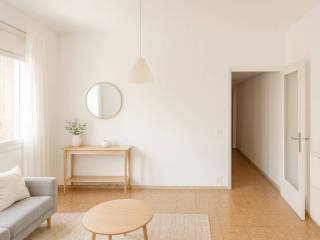 La vivienda ofrece 4 habitaciones y 2 baños, una distribución amplia y versátil que permite múltiples posibilidades de reforma: ampliación del salón, creación de suite principal o integración de espacios para un diseño contemporáneo. El salón destaca por su silencio, privacidad y vistas despejadas hacia Montjuïc, mientras que la orientación suroeste aporta luz natural durante todo el día. La cocina es independiente y dispone de lavadero. La ventilación cruzada garantiza confort térmico todo el año. Aunque no incluye parking, hay plazas de alquiler disponibles en las inmediaciones.