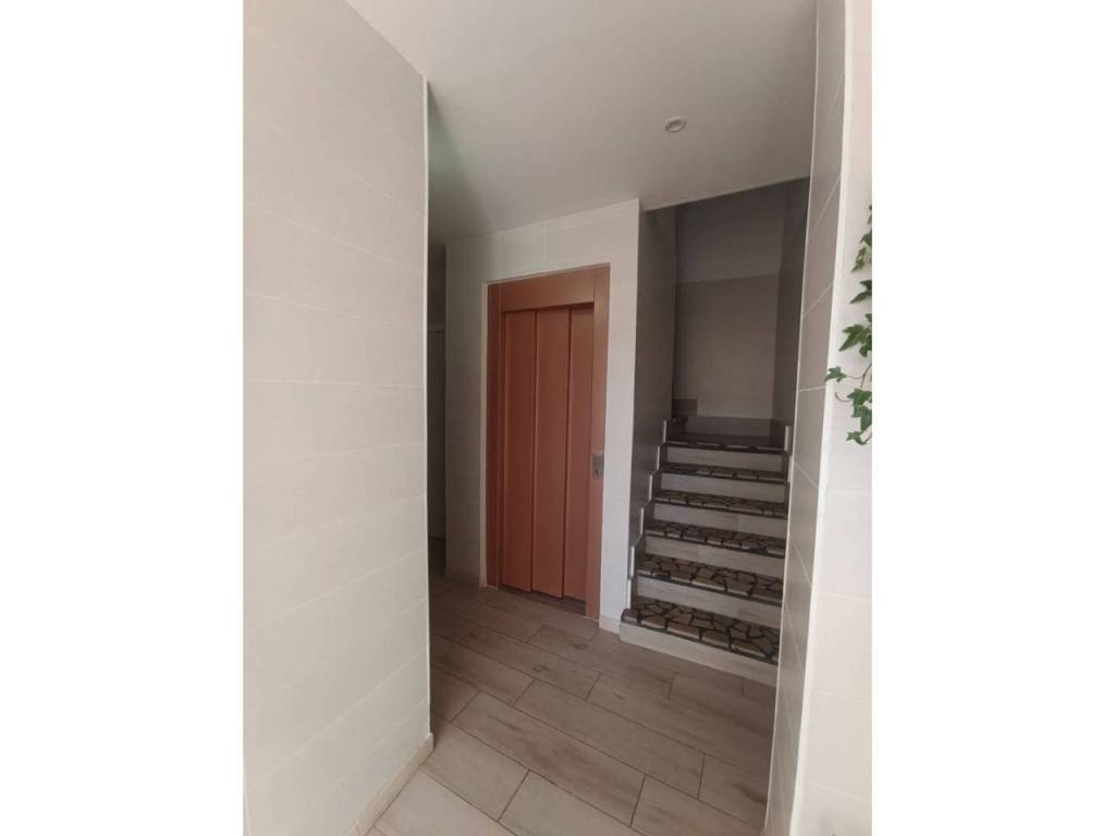 ascensor recién puesto con cabina de lujo, tejado, portal y fachadas recién arregladas.