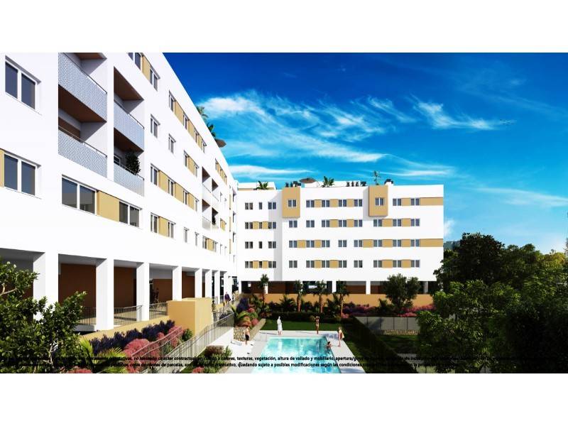 Bonito Conjunto Residencial de apartamentos de 2 y 3 dormitorios a estrenar con piscina, jardines y parque infantil en una zona residencial tranquila de gran auge cerca de los servicios en Vélez-Málaga a pocos metros de la estación de autobuses, colegios, centro de salud, supermercado, etc.
