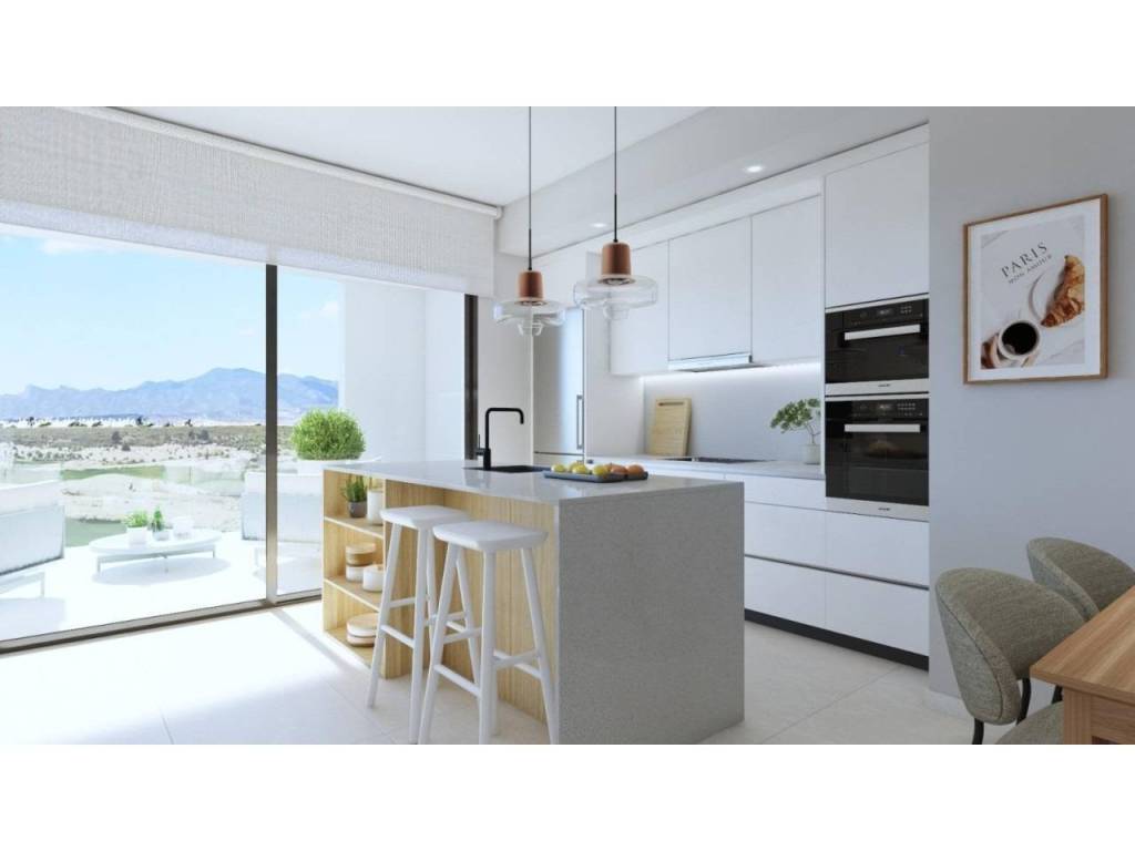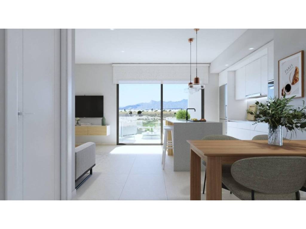 La vivienda consta de 2 dormitorios, 2 baños(uno de ellos en suite), salón-comedor-cocina, lavadero y terraza. estos nuevos apartamentos se encuentran en primera línea de golf a ALHAMA SIGNATURE GOLF, un fabuloso campo de golf de 18 hoyos diseñado por Jack Nicklaus.