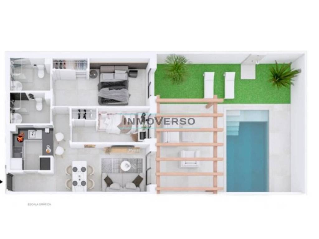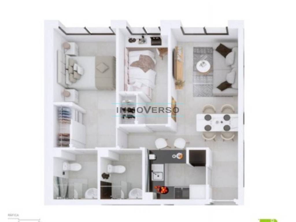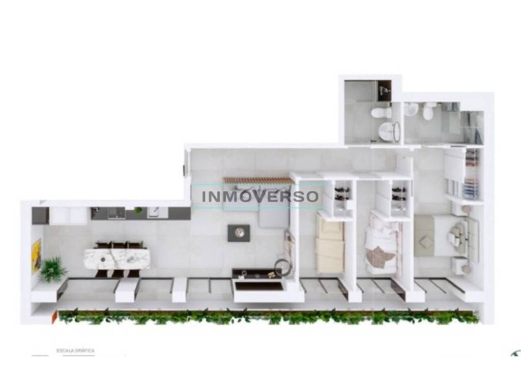 Le informamos que las imágenes publicadas corresponden a distintas tipologías de apartamentos disponibles en la promoción y tienen carácter ilustrativo. Se trata de infografías que no representan necesariamente el estado final de cada unidad. Los apartamentos se entregan sin mobiliario de cocina.