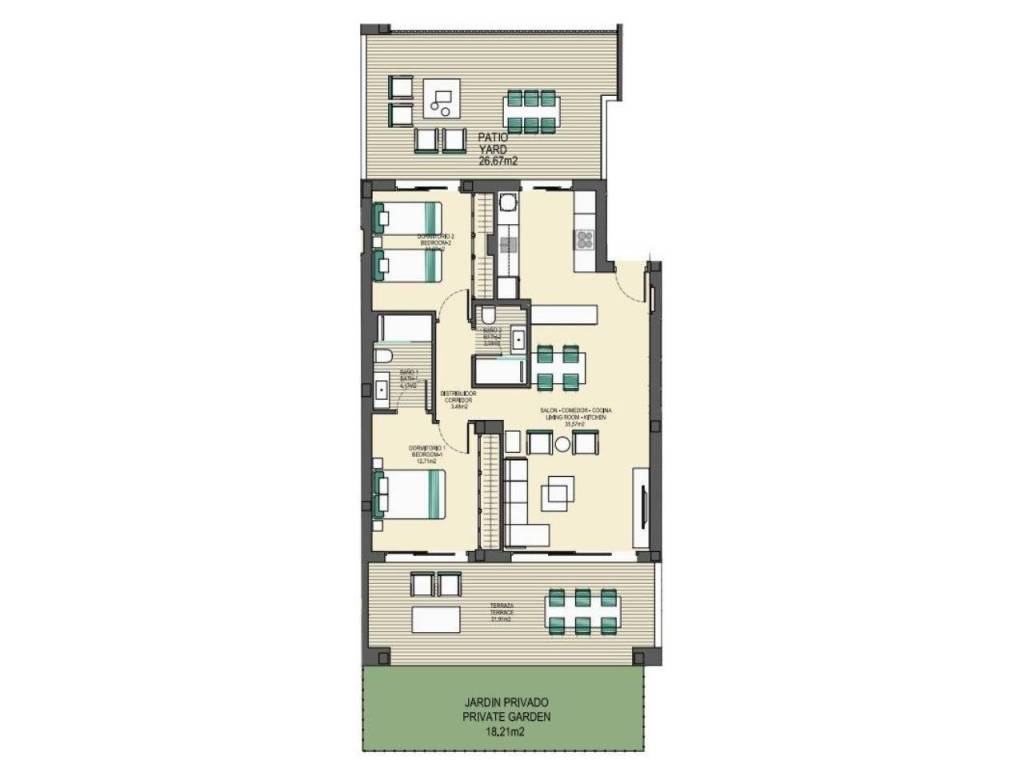Vivienda luminosa y bien distribuida en un residencial privado con piscina, zonas ajardinadas y espacios comunes ideales para el día a día. La vivienda se encuentra en perfecto estado, con buenos acabados y un diseño moderno y funcional. Dispone de climatización por conductos con bomba de frío y calor, además de un sistema de aerotermia que permite un consumo energético eficiente. Suelos de gres porcelánico en toda la casa, cocina equipada con electrodomésticos (vitrocerámica, horno, microondas, campana, lavavajillas, lavadora y frigorífico), carpintería exterior de aluminio con doble acristalamiento, persianas motorizadas en el dormitorio principal y armarios empotrados forrados. Los baños cuentan con sanitarios suspendidos, platos de ducha con mampara fija y grifería de calidad. El dormitorio principal incluye calefacción por suelo radiante. El piso tiene acceso directo al garaje y trastero desde el ascensor, con preinstalación para recarga de coche eléctrico. El residencial dispone de seguridad 24h, zonas comunes con piscina, gimnasio, coworking, sala relax, parque infantil y áreas verdes para disfrutar al aire libre. Ideal para entrar a vivir, en una zona tranquila, bien conectada y con todas las comodidades.