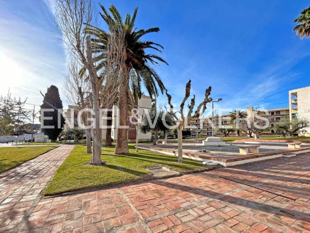 Acogedor piso en planta baja al lado de la playa de Vilafortuny y el Castillo de Baronia. Su mayor cualidad es su gran terraza con bonitas vistas a la zona ajardinada y su proximidad a la playa, a pocos metros andando. Destaca por su tamaño, piso amplio de 3 dormitorios y por su tranquilidad, con una cuidada zona comunitaria. El apartamento muy luminoso y coqueto, tiene un amplio salón comedor con salida directa a la terraza y una cocina independiente pero semiabierta al salón, tres habitaciones, dos de ellas dobles y muy amplias con armarios empotrados y dos baños completos con ducha. Fue reformado hace unos años, con carpintería interior y exterior de calidad, muy bien cuidado y listo para entrar a vivir. Tiene una bonita chimenea en el salón. Un apartamento único muy bien ubicado por su tranquilidad y cercanía al mar y algunos servicios.