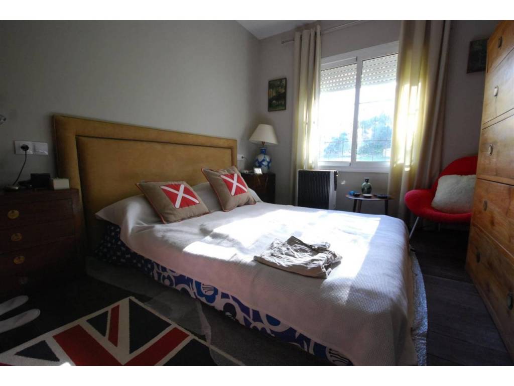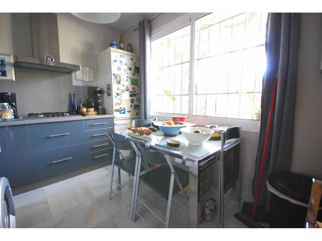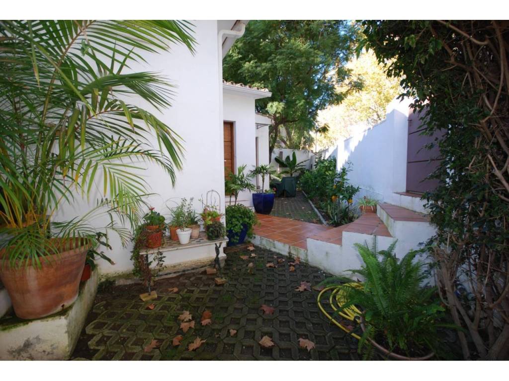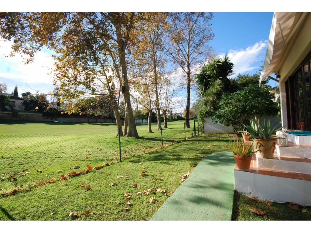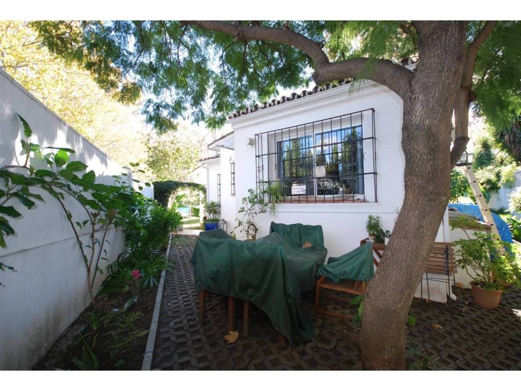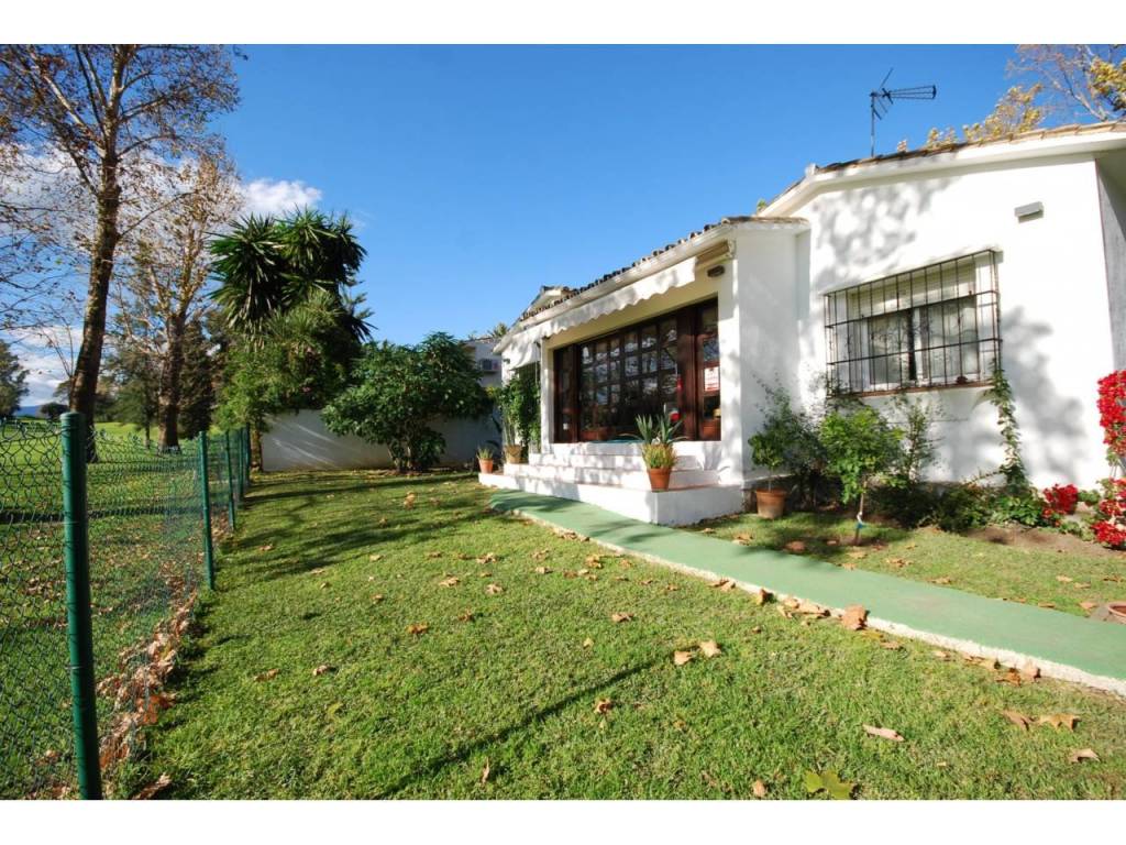 Acogedora villa con orientación Suroeste situada en primera línea de golf y a pocos minutos caminado del centro comercial Guadalmina. La propiedad está distribuida en una sola planta, con suelos de tarima de madera, ofreciendo tres dormitorios con dos baños, amplio salón-comedor con chimenea y cocina completamente equipada. Existe una zona destinada a parking privado.