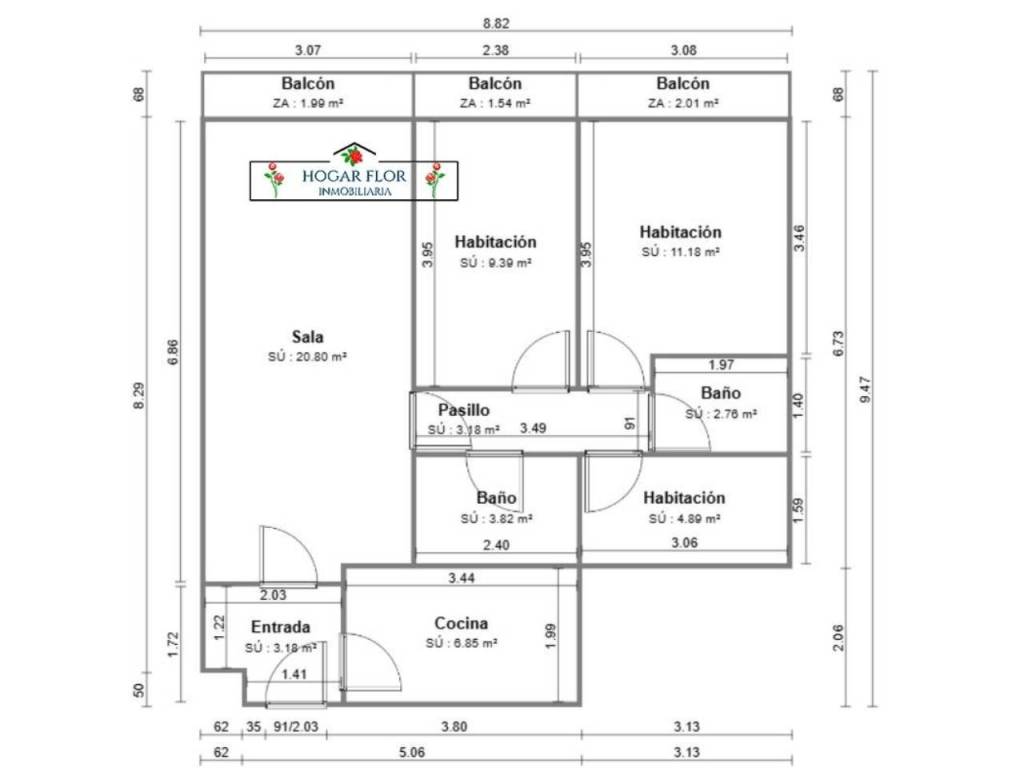 Piso de 86 m2. 3 habitaciones. 2 baños completos.