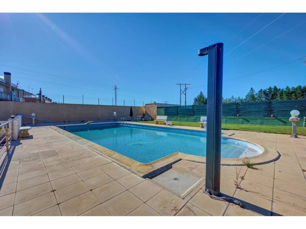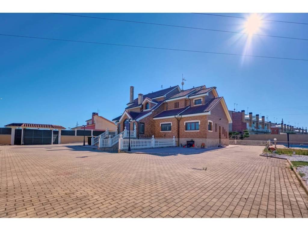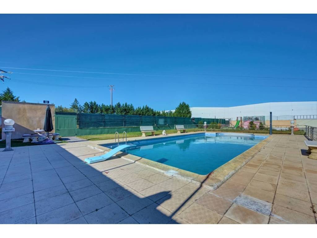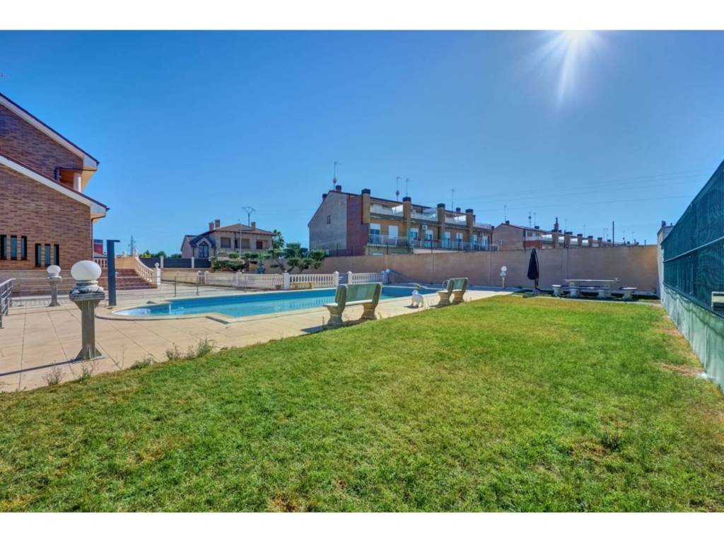 VILLA CON PISCINA EN PARCELA DE 6300 M2 EN SAN ADRIANDescubra su próximo hogar en la encantadora localidad de SAN ADRIAN, donde le espera un INMUEBLE ÚNICO, una espectacular casa independiente construida en el AÑO 1.999 que combina elegancia y comodidad. Ubicada en una imponente parcela de casi 6.500 metros cuadrados y con una impresionante superficie de 677 metros cuadrados construidos, ésta vivienda ofrece amplios espacios que se adaptan perfectamente a sus necesidades y estilo de vida. Dispone de seis dormitorios, proporcionando espacio más que suficiente para una familia grande o para quienes buscan disponer de habitaciones adicionales para oficinas, estudios o salas de recreación. La versatilidad de las estancias le permitirá crear y personalizar los ambientes según sus gustos y necesidades. La propiedad se encuentra situada en una amplia parcela cerrada, lo que garantiza privacidad y seguridad. Uno de sus mayores atractivos es el encantador jardín con olivos ornamentales y gran pavimento que rodea la casa, diseñado para disfrutar de momentos de ocio al aire libre y para los amantes de la naturaleza. Este espacio verde es ideal para el entretenimiento con amigos y familiares, para organizar barbacoas o simplemente para relajarse y disfrutar de la tranquilidad del entorno. Un punto destacado de la propiedad es su piscina privada de gran tamaño, un lujo que ofrece la posibilidad de disfrutar de refrescantes baños durante los meses cálidos, convirtiéndose en el foco de las reuniones familiares y las fiestas con amigos. La planta baja, es una característica clave de ésta vivienda, que cuenta con un garaje espacioso, asegurando que sus vehículos estén resguardados y seguros en todo momento. Cada detalle ha sido cuidado y planificado para que llegar a éste hogar sea una experiencia de vida relajada y placentera.Le describimos con detalle la distribución de cada una de las cuatro plantas:PLANTA SÓTANO : Sala exterior para caldera de calefacción (4 circuitos independientes) y purificadora descalcificadora de agua. Rampa de acceso al garaje de 100 m2 para cuatro vehículos , Bodega/ Txoko de 60 m2 con sala de estar, fogón/ chimenea, comedor y cocina equipada. Baño completo y Despensa.PLANTA BAJA: Porche cerrado de entrada, Recibidor, Cocina completa, Office-lavadero-y patio con tendedero. Dormitorio doble y baño completo. Salón comedor con chimenea/fogón decorativo y Boiserie en la zona de estar. Desde el salón accedemos a una increíble terraza de 55m2 donde podemos disfrutar de un almuerzo o simplemente tomar el sol en el exterior.PLANTA PRIMERA: Cuatro dormitorios dobles , uno de ellos, el principal, con vestidor, baño en suite incluyendo jacuzzi y terraza. Además disponemos en ésta misma planta de un segundo baño completo de 10m2 con Jacuzzi y ducha. Todos los dormitorios cuentan con armarios empotrados a medida, ventanas con mosquiteras y sistema de persianas eléctrico.PLANTA BAJOCUBIERTA: Baño completo con ducha, trastero y buhardilla diáfana de 50m2 con grandes ventanales.ZONA EXTERIOR: 600m2 de zona pavimentada en todo el perímetro de la casa. Además dispone de otros 400m2 de pavimento y jardin alrededor de una gran piscina vallada de 75 m2. Junto a la piscina, zona de vestuarios , baños y merendero. Zona de ASADOR con barbacoa de obra , porche y zona de \"trabajo\". Alumbrado automático perimetral en el edificio y alumbrado exterior para toda la zona exterior. Zona infantil . Toldos automáticos para cubrir la terraza , jardín con riego automático , césped y dos elegantes olivos hornamentales.ACCESO: Puerta de acceso para vehículos automática y otra peatonal. Zona exterior e interior con sistema de videovigilancia y alarma.Tomar la decisión de visitar ésta propiedad significa mucho más que comprar una casa; es obtener un refugio donde se entrelazan comodidad, estilo de vida y seguridad. Le invitamos a visitar esta joya arquitectónica y a sentir personalmente el ambiente acogedor y las múltiples posibilidades que ofrece. No pierda la oportunidad de conocer este maravilloso inmueble que podría convertirse en su próximo hogar.Permítanos acompañarle en un recorrido y mostrarle cada rincón de esta magnífica casa. La combinación única de características y su ubicación estratégica hacen de esta propiedad una inversión ideal para quienes buscan calidad, espacio y una conexión perfecta con el entorno natural. Contáctenos para programar una visita; estaremos encantados de responder a todas sus preguntas y proporcionarle la información que necesite para tomar esta importante decisión. Su futuro hogar le espera en San Adrián, donde el confort y la elegancia se unen de manera sublime.Informamos a nuestros clientes que el precio de venta no incluye impuestos ( ITP, IVA o AJD), honorarios de agencia , ni otros gastos de compraventa ( Registro de la Propiedad, Notaría, Gestoría ni de posible financiación)