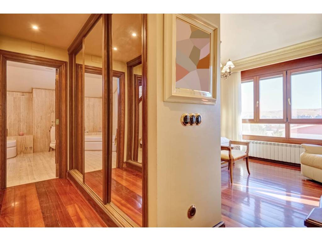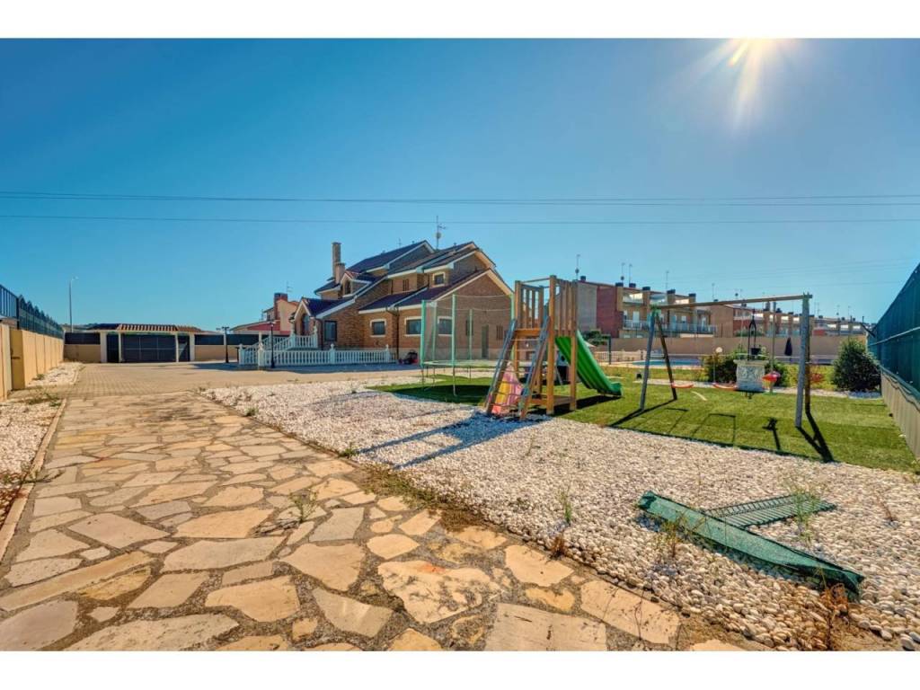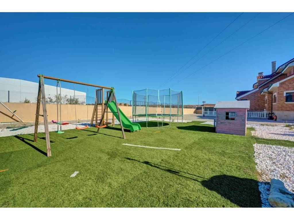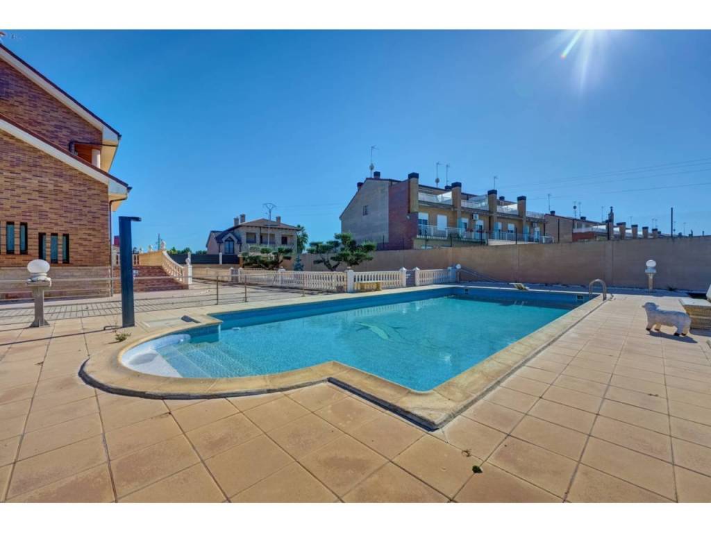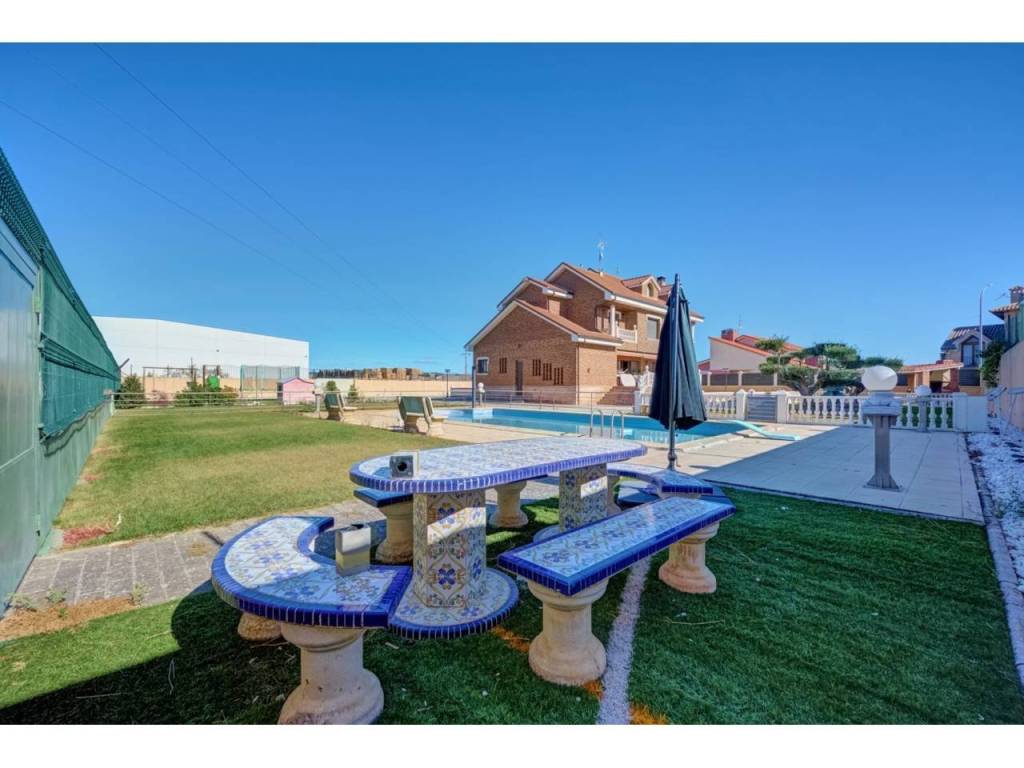 VILLA CON PISCINA EN PARCELA DE 6300 M2 EN SAN ADRIANDescubra su próximo hogar en la encantadora localidad de SAN ADRIAN, donde le espera un INMUEBLE ÚNICO, una espectacular casa independiente construida en el AÑO 1.999 que combina elegancia y comodidad. Ubicada en una imponente parcela de casi 6.500 metros cuadrados y con una impresionante superficie de 677 metros cuadrados construidos, ésta vivienda ofrece amplios espacios que se adaptan perfectamente a sus necesidades y estilo de vida. Dispone de seis dormitorios, proporcionando espacio más que suficiente para una familia grande o para quienes buscan disponer de habitaciones adicionales para oficinas, estudios o salas de recreación. La versatilidad de las estancias le permitirá crear y personalizar los ambientes según sus gustos y necesidades. La propiedad se encuentra situada en una amplia parcela cerrada, lo que garantiza privacidad y seguridad. Uno de sus mayores atractivos es el encantador jardín con olivos ornamentales y gran pavimento que rodea la casa, diseñado para disfrutar de momentos de ocio al aire libre y para los amantes de la naturaleza. Este espacio verde es ideal para el entretenimiento con amigos y familiares, para organizar barbacoas o simplemente para relajarse y disfrutar de la tranquilidad del entorno. Un punto destacado de la propiedad es su piscina privada de gran tamaño, un lujo que ofrece la posibilidad de disfrutar de refrescantes baños durante los meses cálidos, convirtiéndose en el foco de las reuniones familiares y las fiestas con amigos. La planta baja, es una característica clave de ésta vivienda, que cuenta con un garaje espacioso, asegurando que sus vehículos estén resguardados y seguros en todo momento. Cada detalle ha sido cuidado y planificado para que llegar a éste hogar sea una experiencia de vida relajada y placentera.Le describimos con detalle la distribución de cada una de las cuatro plantas:PLANTA SÓTANO : Sala exterior para caldera de calefacción (4 circuitos independientes) y purificadora descalcificadora de agua. Rampa de acceso al garaje de 100 m2 para cuatro vehículos , Bodega/ Txoko de 60 m2 con sala de estar, fogón/ chimenea, comedor y cocina equipada. Baño completo y Despensa.PLANTA BAJA: Porche cerrado de entrada, Recibidor, Cocina completa, Office-lavadero-y patio con tendedero. Dormitorio doble y baño completo. Salón comedor con chimenea/fogón decorativo y Boiserie en la zona de estar. Desde el salón accedemos a una increíble terraza de 55m2 donde podemos disfrutar de un almuerzo o simplemente tomar el sol en el exterior.PLANTA PRIMERA: Cuatro dormitorios dobles , uno de ellos, el principal, con vestidor, baño en suite incluyendo jacuzzi y terraza. Además disponemos en ésta misma planta de un segundo baño completo de 10m2 con Jacuzzi y ducha. Todos los dormitorios cuentan con armarios empotrados a medida, ventanas con mosquiteras y sistema de persianas eléctrico.PLANTA BAJOCUBIERTA: Baño completo con ducha, trastero y buhardilla diáfana de 50m2 con grandes ventanales.ZONA EXTERIOR: 600m2 de zona pavimentada en todo el perímetro de la casa. Además dispone de otros 400m2 de pavimento y jardin alrededor de una gran piscina vallada de 75 m2. Junto a la piscina, zona de vestuarios , baños y merendero. Zona de ASADOR con barbacoa de obra , porche y zona de \"trabajo\". Alumbrado automático perimetral en el edificio y alumbrado exterior para toda la zona exterior. Zona infantil . Toldos automáticos para cubrir la terraza , jardín con riego automático , césped y dos elegantes olivos hornamentales.ACCESO: Puerta de acceso para vehículos automática y otra peatonal. Zona exterior e interior con sistema de videovigilancia y alarma.Tomar la decisión de visitar ésta propiedad significa mucho más que comprar una casa; es obtener un refugio donde se entrelazan comodidad, estilo de vida y seguridad. Le invitamos a visitar esta joya arquitectónica y a sentir personalmente el ambiente acogedor y las múltiples posibilidades que ofrece. No pierda la oportunidad de conocer este maravilloso inmueble que podría convertirse en su próximo hogar.Permítanos acompañarle en un recorrido y mostrarle cada rincón de esta magnífica casa. La combinación única de características y su ubicación estratégica hacen de esta propiedad una inversión ideal para quienes buscan calidad, espacio y una conexión perfecta con el entorno natural. Contáctenos para programar una visita; estaremos encantados de responder a todas sus preguntas y proporcionarle la información que necesite para tomar esta importante decisión. Su futuro hogar le espera en San Adrián, donde el confort y la elegancia se unen de manera sublime.Informamos a nuestros clientes que el precio de venta no incluye impuestos ( ITP, IVA o AJD), honorarios de agencia , ni otros gastos de compraventa ( Registro de la Propiedad, Notaría, Gestoría ni de posible financiación)