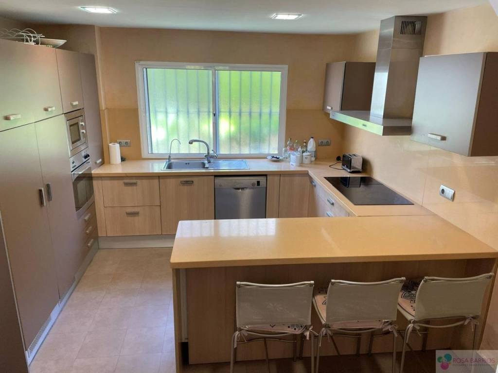 La vivienda cuenta con 5 dormitorios, 3 baños, amplia cocina equipada, lavadero, salón-comedor y varias terrazas perfectas para disfrutar del clima mediterráneo. Además, dispone de un jardín privado ideal para relajarse.