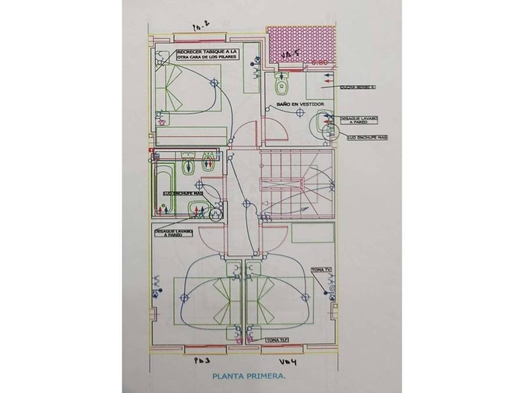 - Primera planta: tres dormitorios uno con baño en suite, dos baños completo,