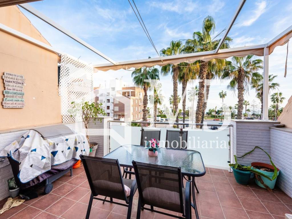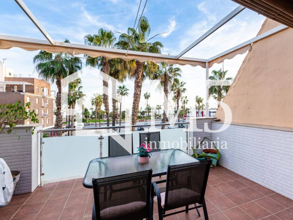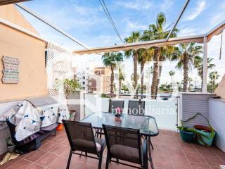 Descubre esta fantástica casa adosada situada en una ubicación privilegiada y con vistas impresionantes al mar. Con una superficie de 165 metros cuadrados, esta propiedad ofrece un espacio luminoso y acogedor, perfecto para disfrutar en familia o con amigos. Cuenta con tres dormitorios y tres baños, todos ellos reformados y equipados con acabados de alta calidad. El dormitorio principal también cuenta con vestidor. La vivienda está amueblada y dispone de aire acondicionado para garantizar tu confort en cualquier estación del año. La cocina, completamente equipada y amueblada, se integra en un diseño funcional y moderno. La terraza y el balcón ofrecen espacios ideales para relajarse y contemplar el mar, mientras que las ventanas de climalit aseguran un excelente aislamiento y eficiencia energética. La orientación sur de la vivienda permite aprovechar al máximo la luz natural y el sol durante todo el día. Además, el suelo de tarima y las paredes con pintura lisa aportan un toque elegante y actual. Situada en una zona céntrica, esta propiedad combina comodidad, estilo y vistas inigualables en un entorno privilegiado.