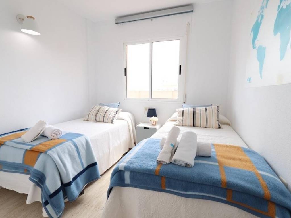 Dehesa de Campoamor. . Apartamento en la novena planta con vistas espectaculares al mar . Edificio en la primera linea del mar con ascensores , cerca del gimnasio / pistas del pádel / piscina de pago y zona de los restaurantes y cafeterías. Vivienda de 3 dormitorios y 2 baños , cocina independiente, amplio salón y terraza con vistas al mar . Apartamento esta amueblado y equipado , dispone de 2 camas dobles y 2 camas individuales , ventiladores , Wi- Fi, ropa de cama y toallas . Apartamento acogedor, bien decorado, facilita comodidad de descanso en el periodo vacacional. Precio en la temporada baja de Septiembre hasta Abril 1.000/ mes + facturas luz (periodo mínimo de 3 meses).