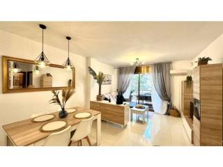 El apartamento incluye ventanas de aluminio con doble acristalamiento, climatización reversible y se vende amueblado. Además, dispone de una plaza de parking privada en el subsuelo. La comunidad ofrece varias piscinas y jardines.