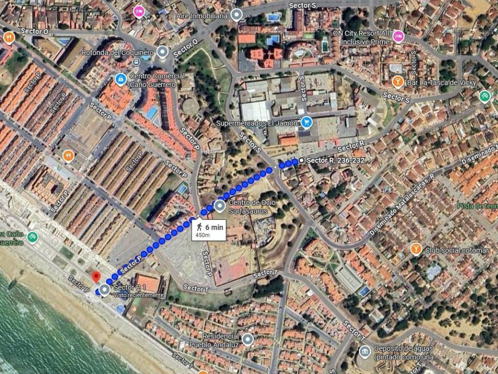 Se vende vivienda en una ubicación inmejorable, a tan solo 450 metros de la playa (6 minutos andando según Google Maps) y justo al lado del supermercado El Jamón, lo que aporta comodidad y servicios al alcance de la mano.