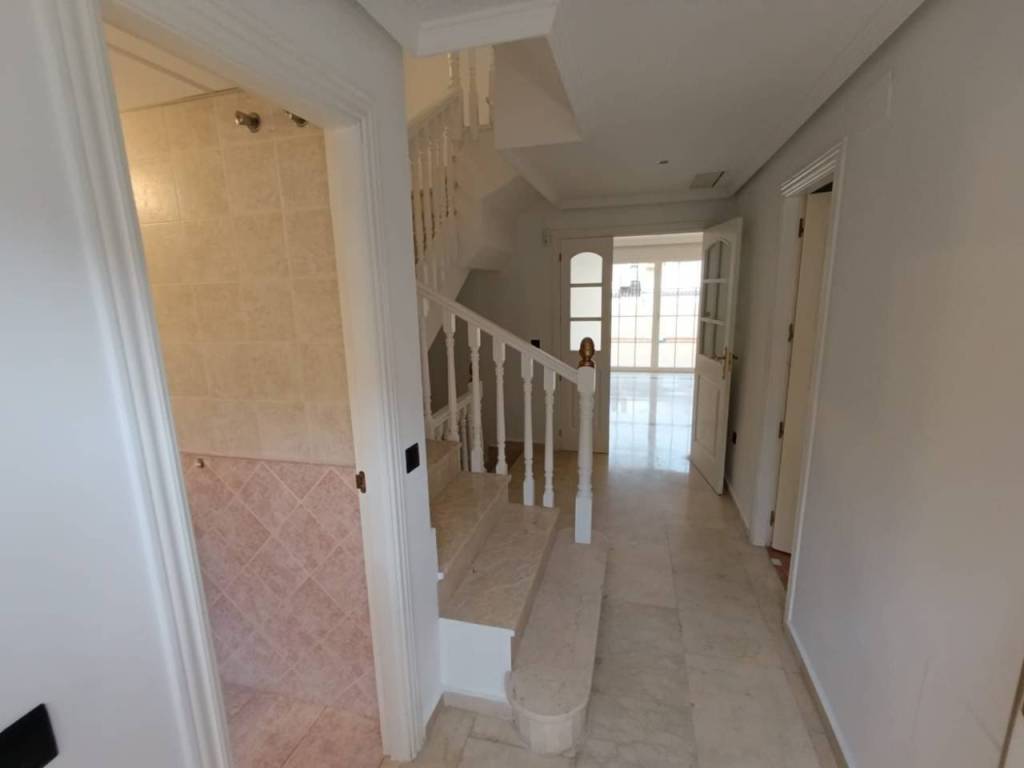 Urge venta! Cien mil euros por debajo de precio de mercado. Descubre este espectacular chalet adosado en la codiciada zona baja de Calahonda, a unos cinco minutos andando a la playa. Con una superficie construida de 233 m², esta propiedad ofrece un espacio ideal para disfrutar de la vida en la Costa del Sol. Al entrar, te recibe un acogedor porche que da paso a un amplio salón, perfecto para momentos en familia, una gran cocina con grandes cristaleras y una espaciosa terraza. La planta alta cuenta con tres luminosos dormitorios y dos baños, mientras que la buhardilla añade un dormitorio con encanto, con baño completo, y con una luz espectacular por sus ventanas en techo, una de ellas sobre la bañera de hidromasaje.